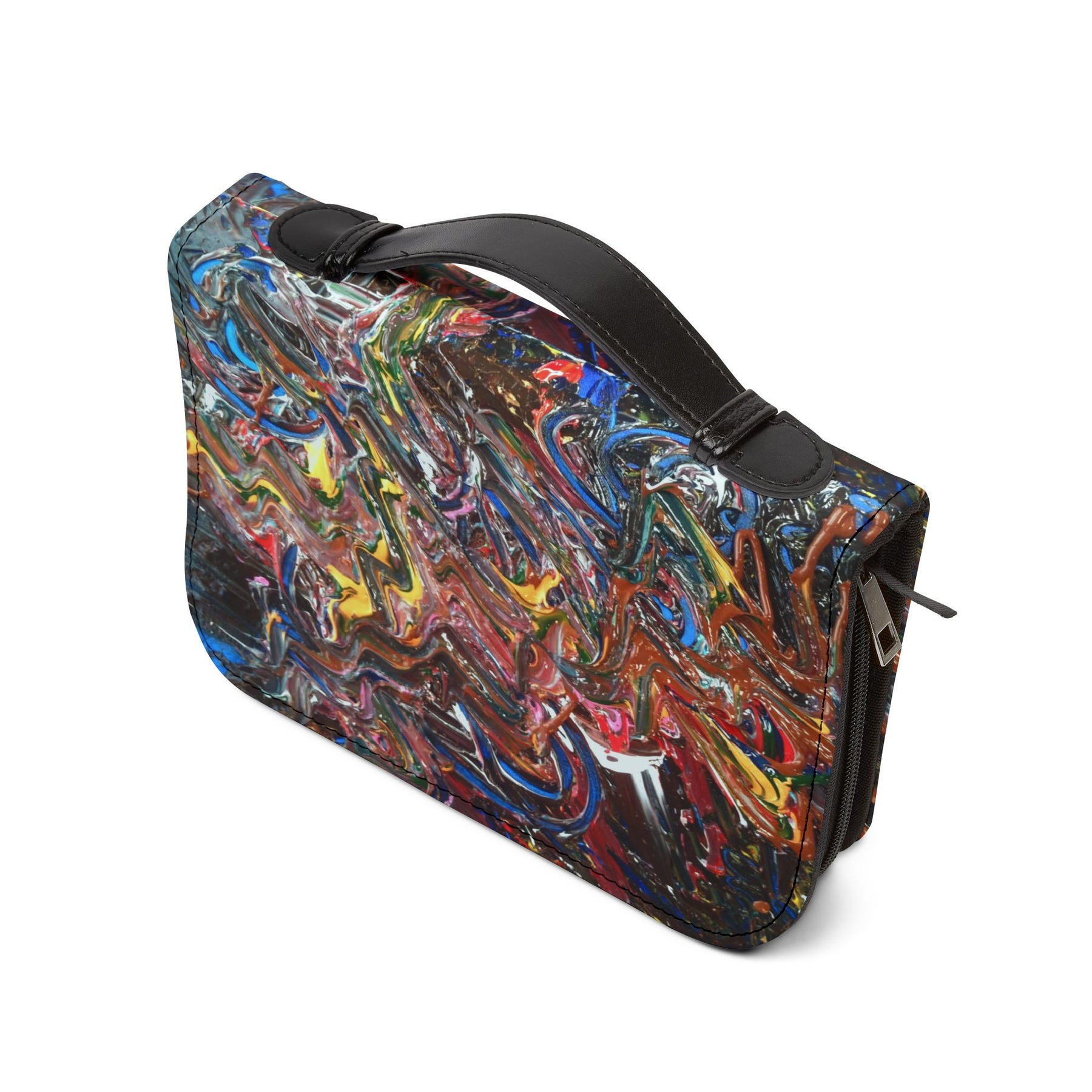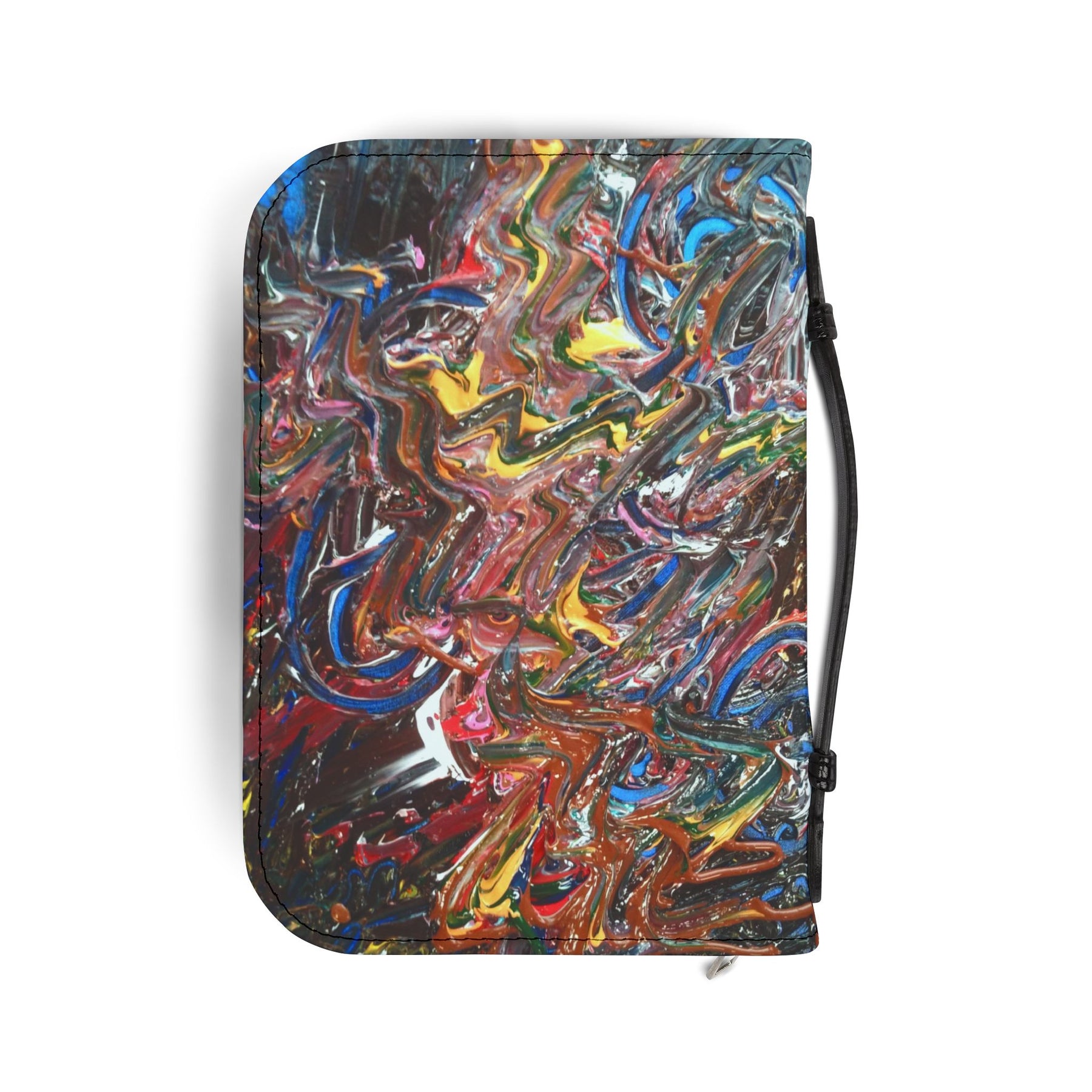 Carry your Bible with color and care. This zippered Bible cover wraps your book in durable, clean-feeling PU leather, while the interior pockets keep notes, pens, and small mementos organized. The vibrant, painterly design brings an expressive, artful touch—bright swirls and layered strokes that make each moment of study feel more alive. A black handle and matching trim make it easy to grab and go, and the secure zipper protects pages during travel or storage. Size options let you choose a comfortable fit; many customers prefer ordering one size up for a roomier fit and easier page turning. This cover fits most standard Bible sizes and adds both practical storage and a joyful, personal style to daily devotion or group study.