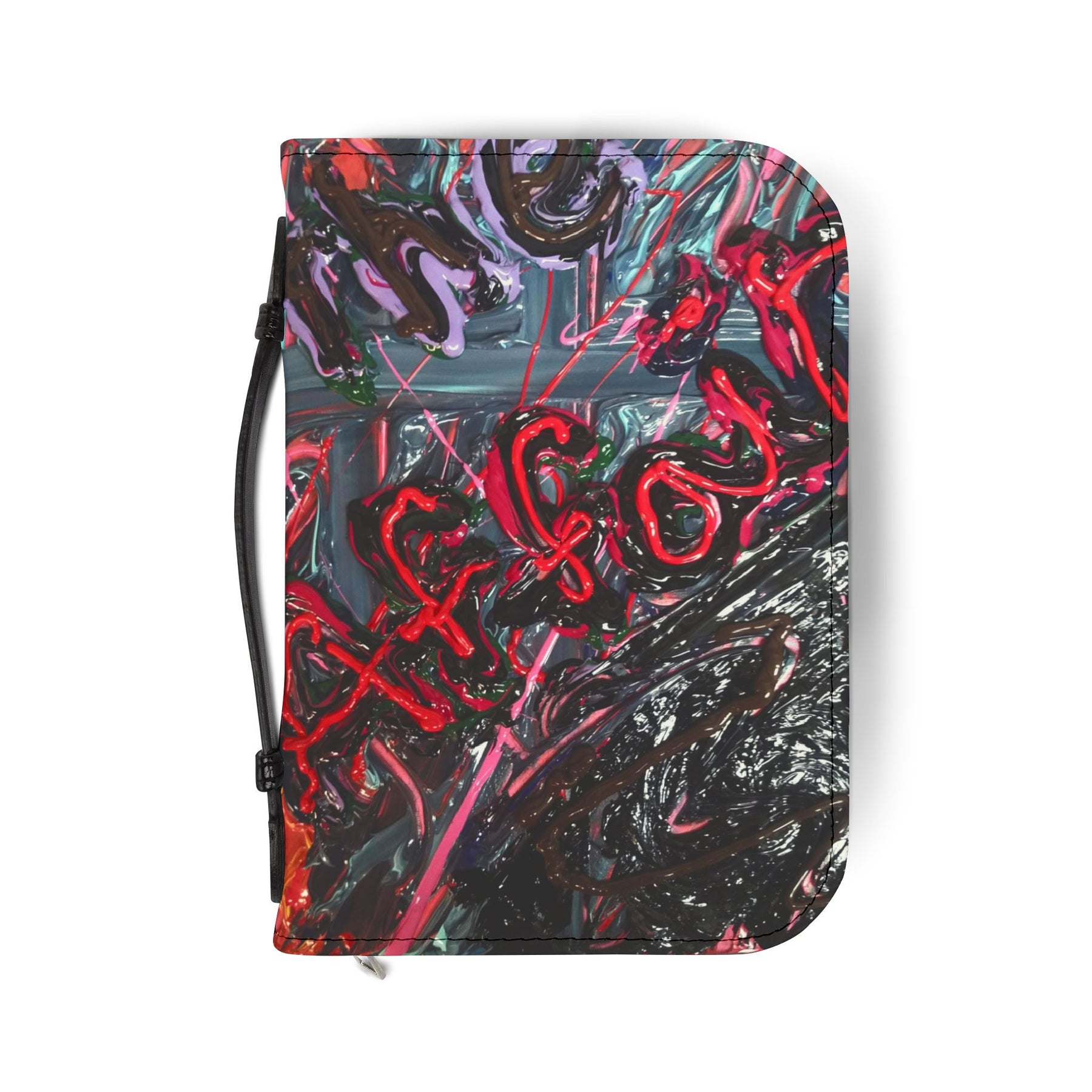 This PU leather Bible cover combines protective function with bold, contemporary art. The vibrant, abstract design wraps around a black-trimmed exterior and secures with a smooth zipper and comfortable handle. Inside, multiple compartments keep a Bible, notes, pens, and small devotional items organized and within reach. Lightweight yet durable, the cover slips over most Bible sizes and brings a modern, expressive touch to daily worship, study, or travel.