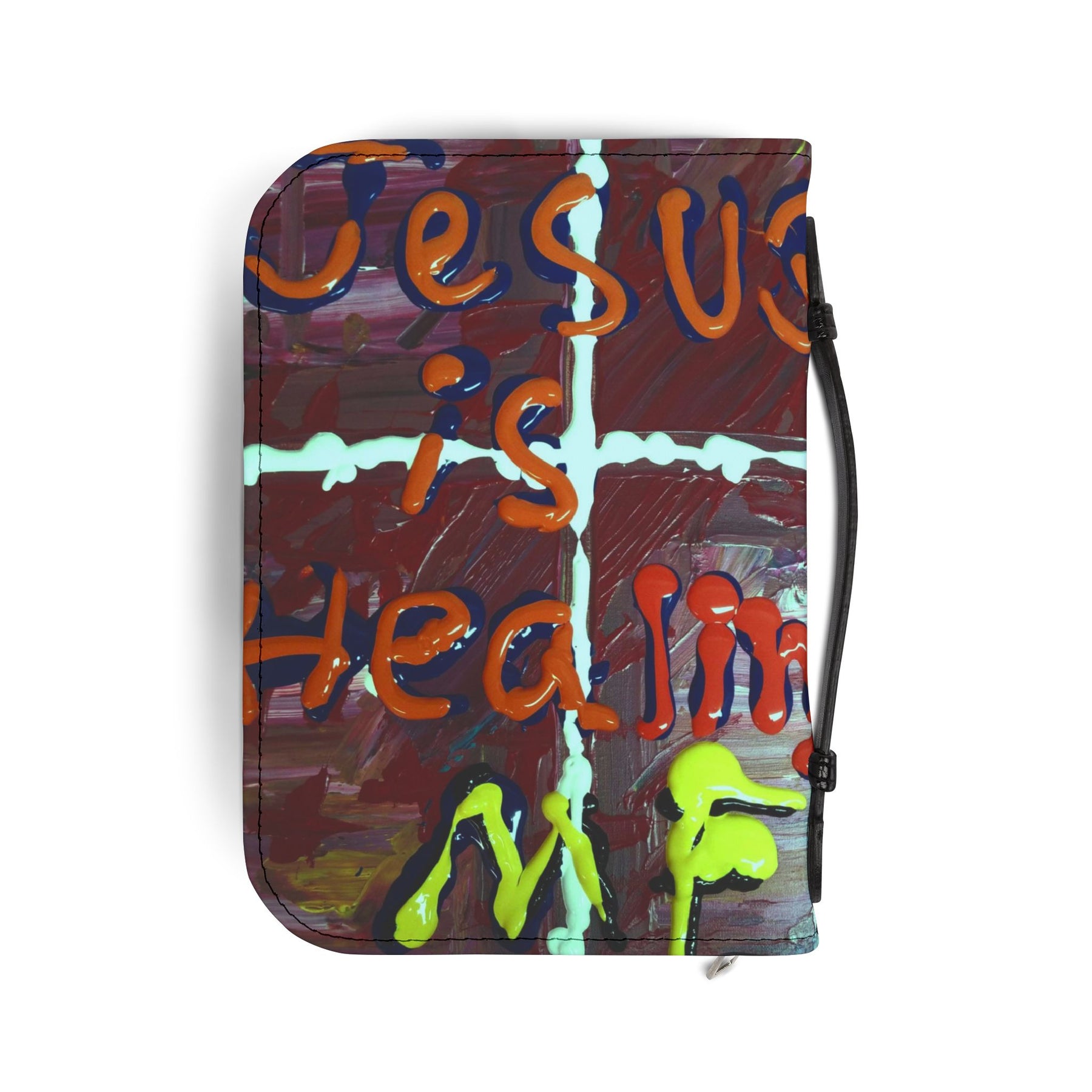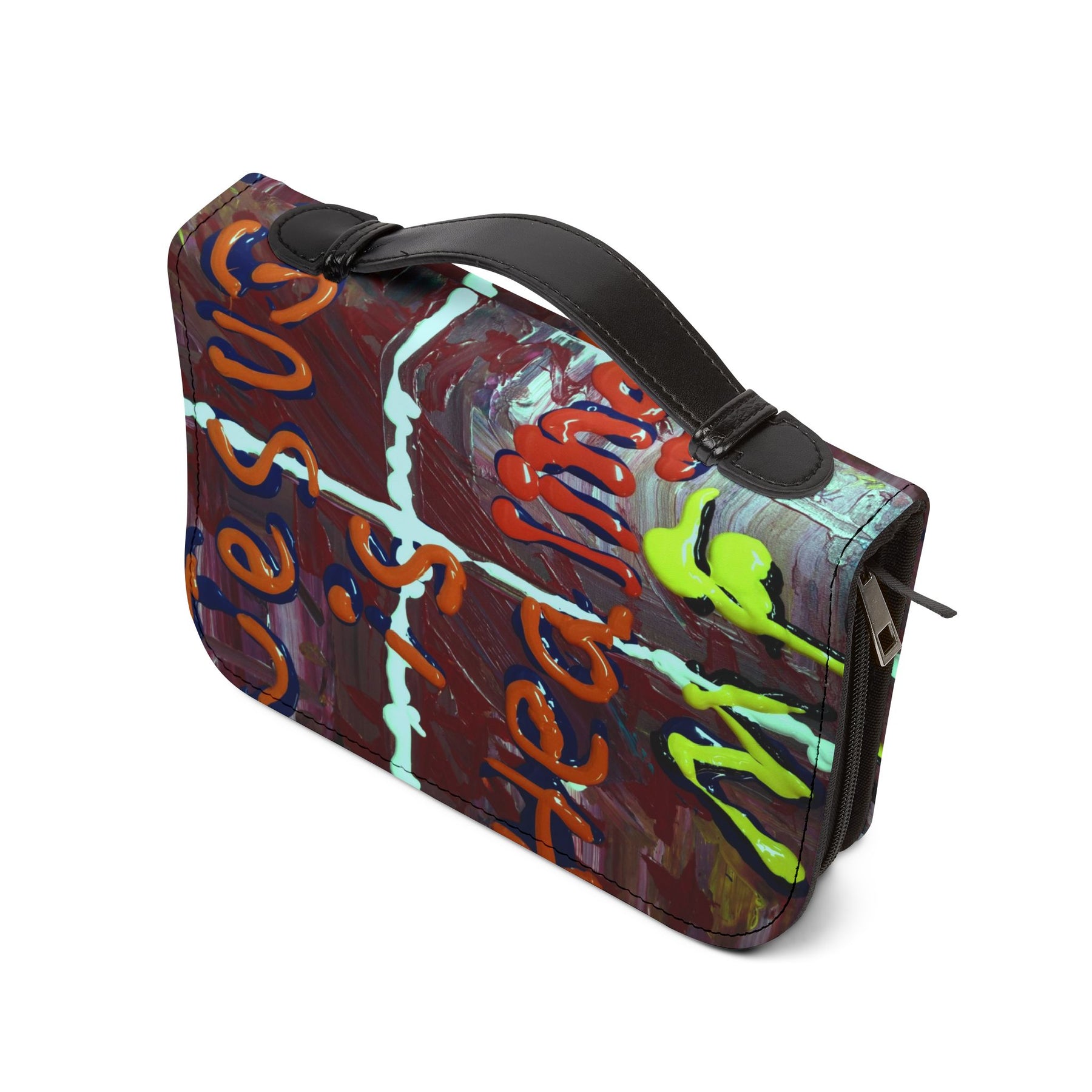 Carry your Scripture with intention. This PU leather Bible cover wraps your Bible in a durable, easy-care shell with a lively, painted-front design that reads as heartfelt testimony. The bright, hand-painted lettering and cross motif stand out against a textured, warm background—bringing color and witness to your devotional time, study group, or church bag. Thoughtfully stitched with a black interior, zipper, and handle, it opens to reveal pockets for notes, pens, and cards so your Bible and essentials stay organized and ready when worship, Bible study, or quiet prayer calls.