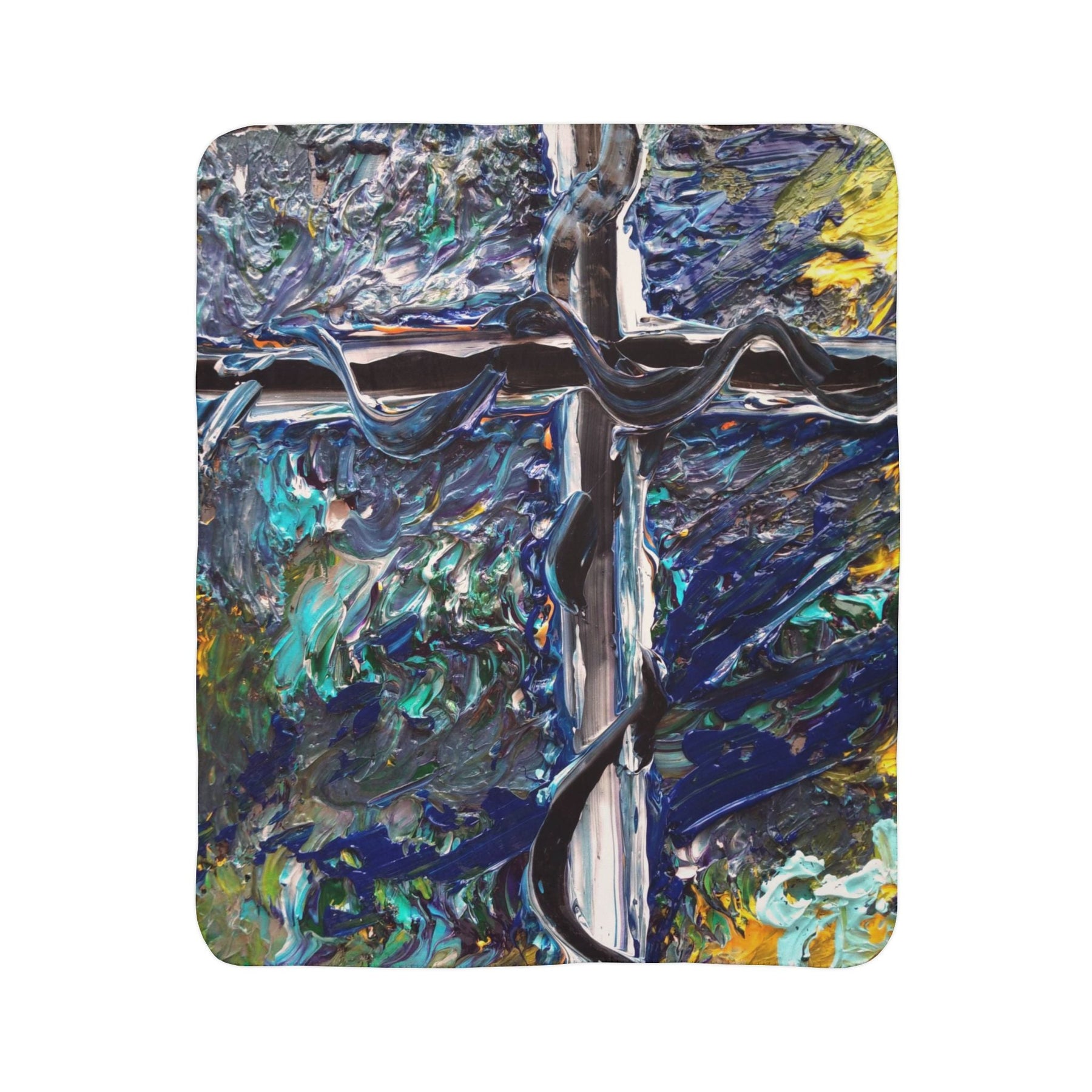 Abstract Coastal Cross Fleece Sherpa Blanket