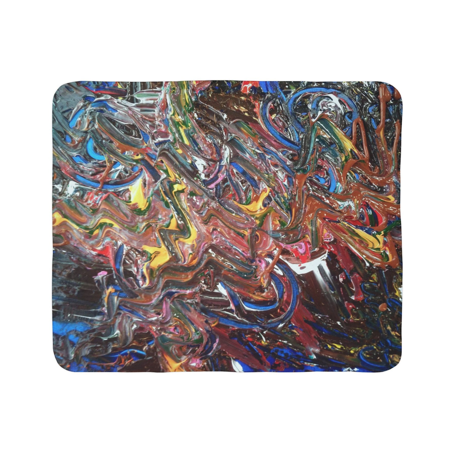 Wrap yourself in a riot of color and texture with this plush sherpa fleece blanket. Thick, double-sided fleece cushions you while a one-sided, high-definition print pours with swirling strokes of blues, crimsons, golds and inky blacks — like a small, portable abstract canvas. Use it on the couch during late-night painting sessions, drape it over a reading chair to brighten a studio loft, or tuck it around your shoulders after a chilly gallery walk. The dense 14.1 oz polyester holds the print’s vibrancy, while hemmed edges and matched seam thread keep the piece feeling thoughtfully finished. It’s for makers, makers-at-heart, and anyone who loves bold, tactile color in their everyday spaces.
