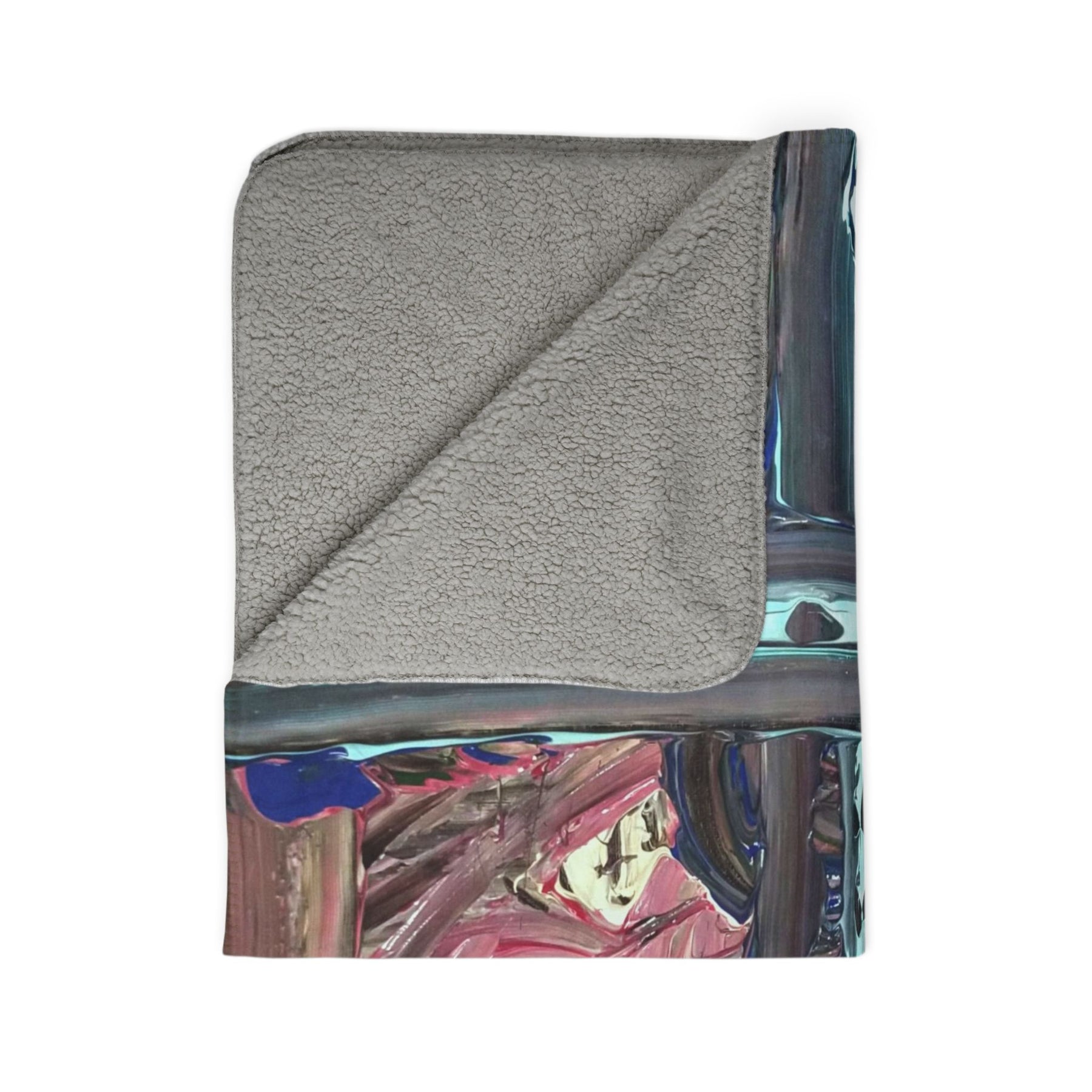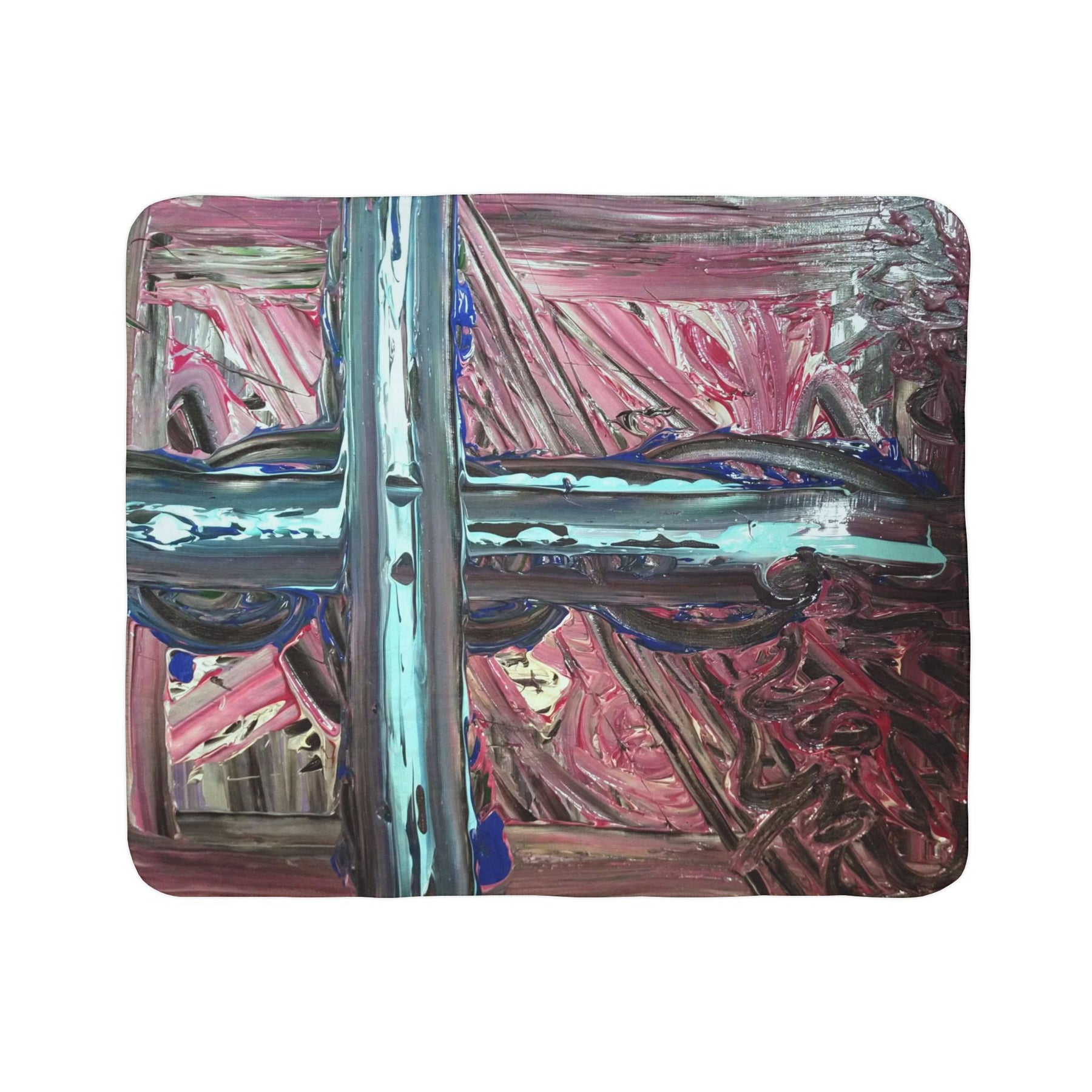 This plush Sherpa fleece blanket wraps you in slow, quiet comfort. Thick polyester fleece and a soft, lofty Sherpa reverse catch body heat and smooth out the day’s edges. The design — layered brushstrokes in moody pinks, teal crossbars and rich, textured marks — reads like a small, private painting folded over a couch or draped across a reading chair. It’s the kind of blanket you reach for when you want to sink into a book, sip something warm, or settle in for an evening of low lights and calm music. Colors stay vibrant thanks to modern printing, and the hemmed edges hold up after repeated use so the piece remains both an artwork and a lived-in comfort.