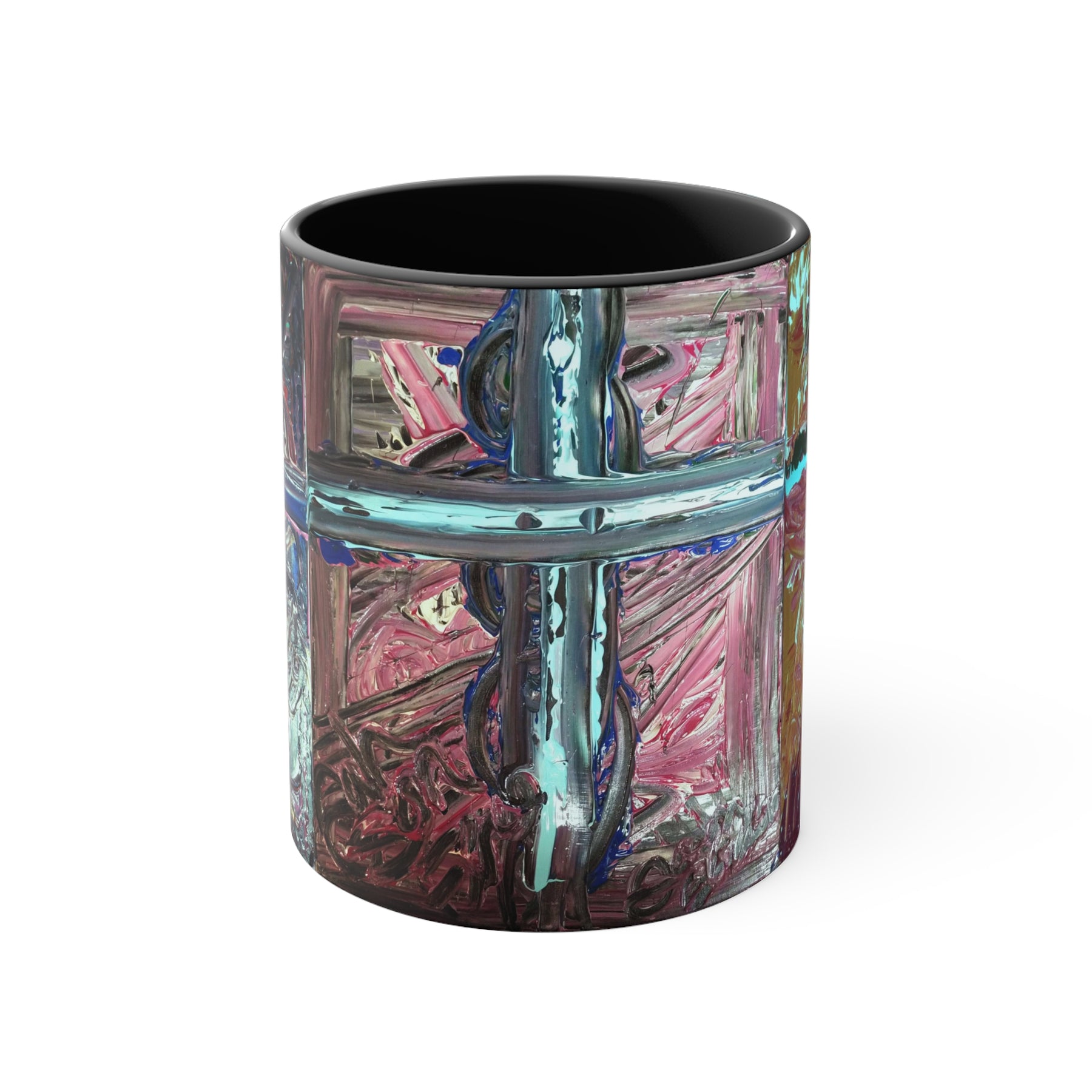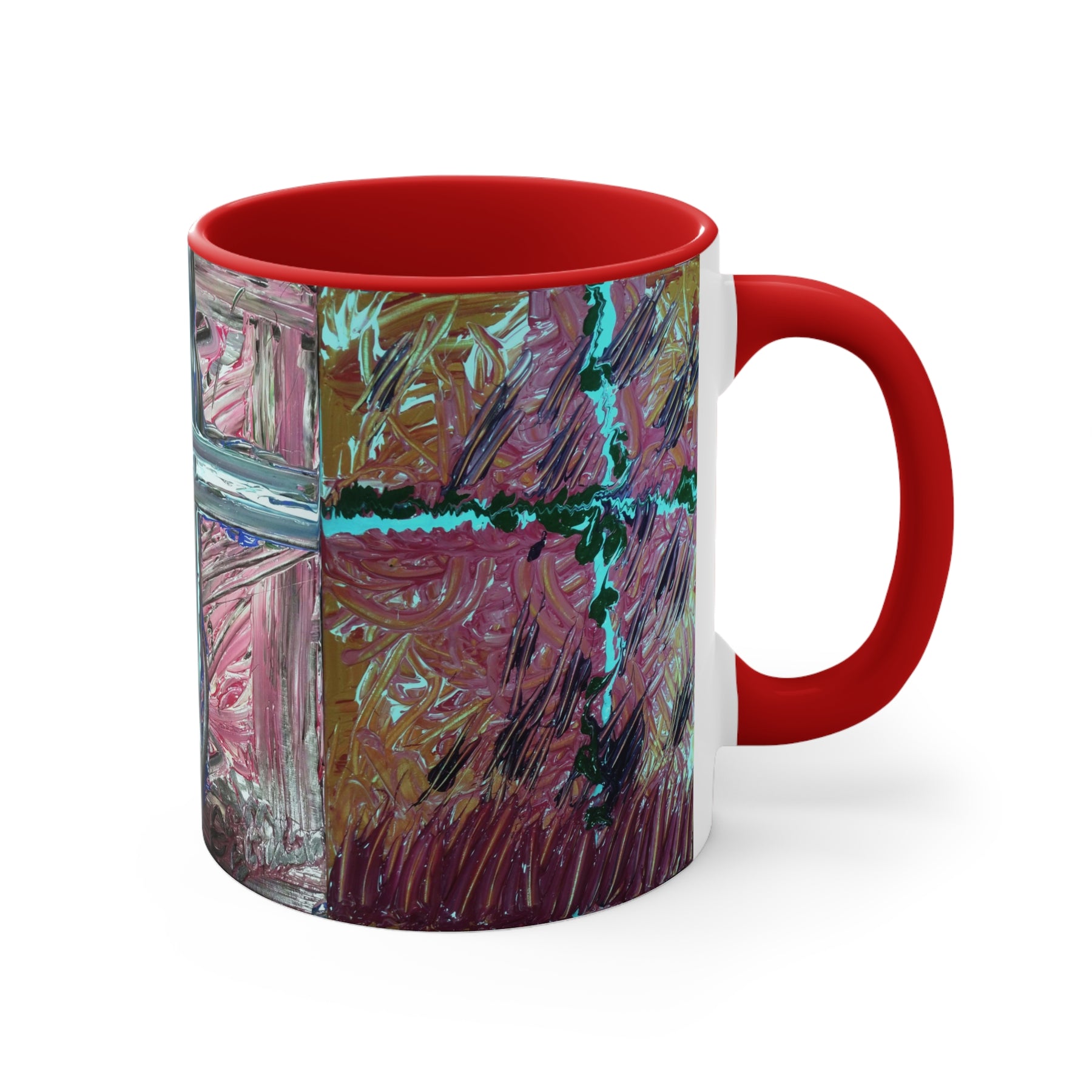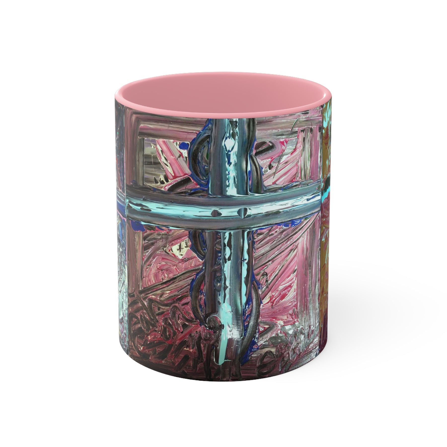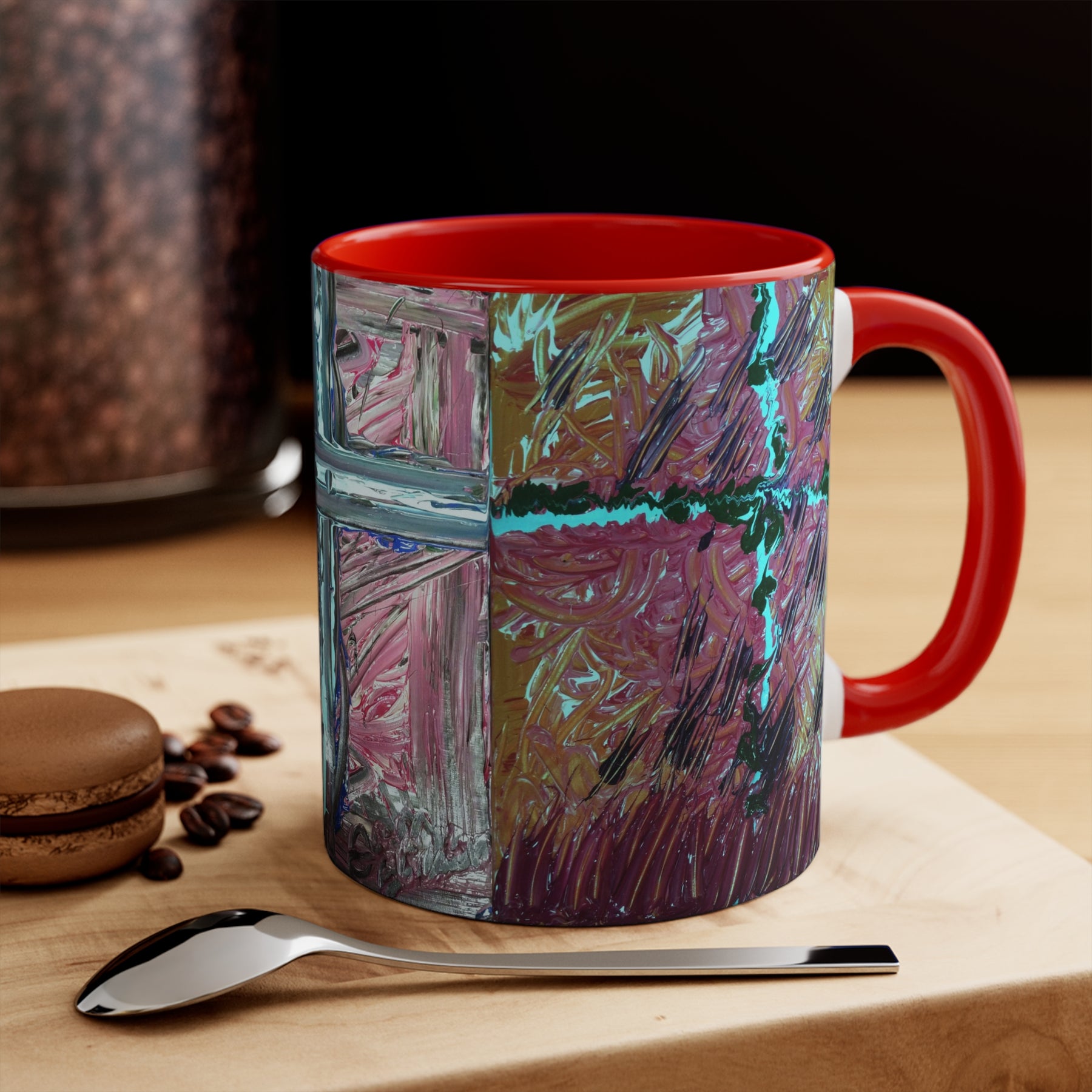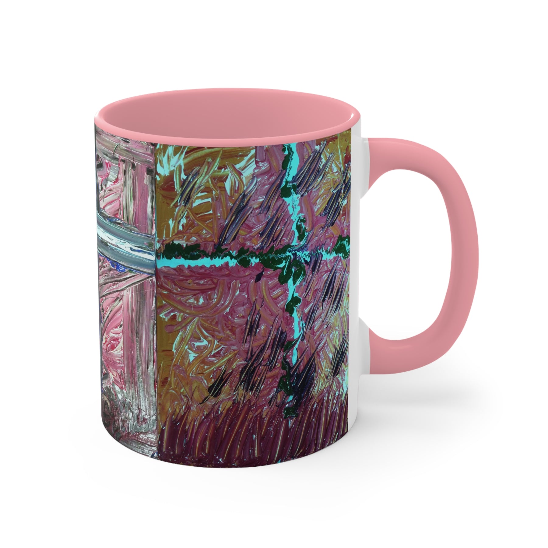 This vibrant accent mug brings artful color to your daily ritual. Glossy ceramic wraps a painterly abstract design—rich blues, pinks, and metallic accents—around a soft pink interior and handle. It feels lively in your hands and lifts a quiet morning or an evening tea break into a small, bright moment. The rounded rim and comfortable C-handle make it easy to sip slowly while you read, sketch, or catch up with a friend. These mugs are durable enough for everyday use and hold up well in the kitchen while keeping the design vivid for seasons to come.