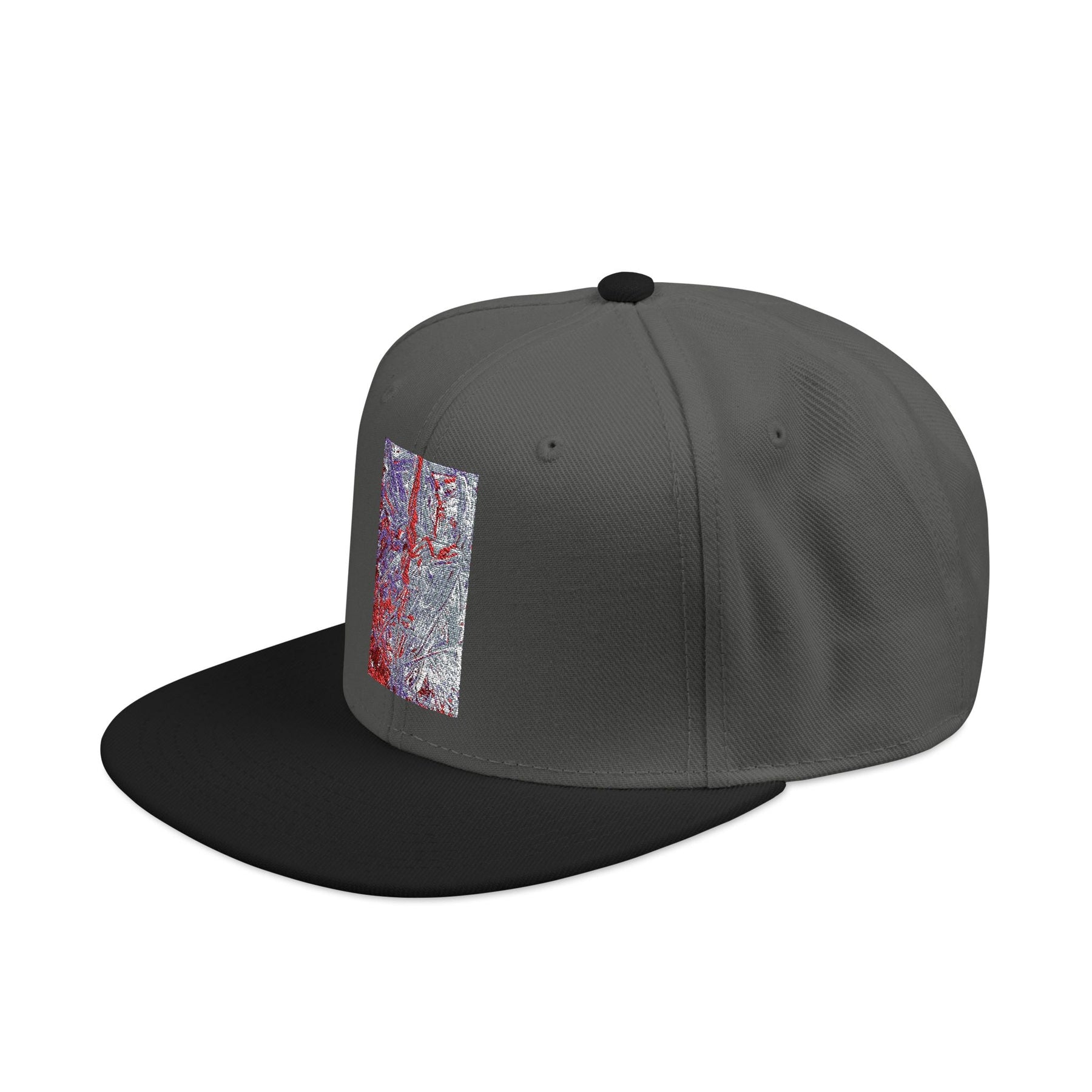 A structured snapback with a bold embroidered emblem that reads like street art in thread. The high-profile, six-panel crown holds a crisp embroidered patch, while the flat black visor and gray undervisor give a sharp, urban silhouette. Lightweight acrylic-wool blend keeps the cap breathable with a neat, elevated feel. The adjustable snap closure lets you dial in a comfortable fit for everyday wear — from skate sessions and city commutes to nights out when you want a low-key, graphic accent.