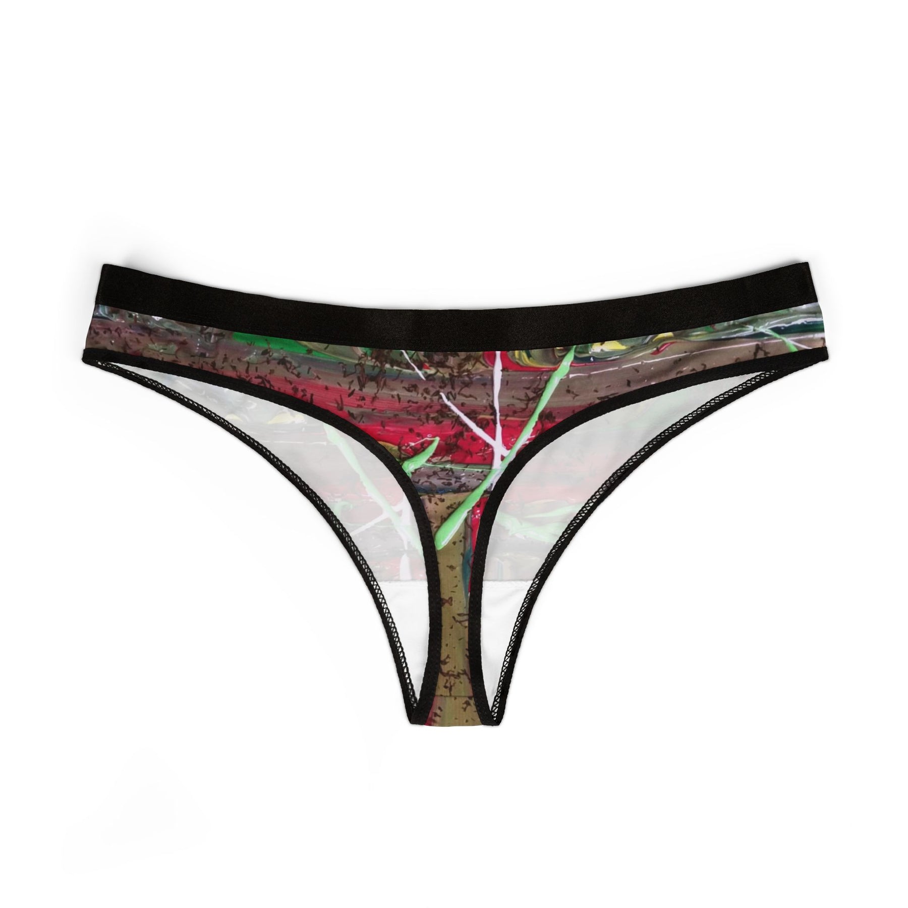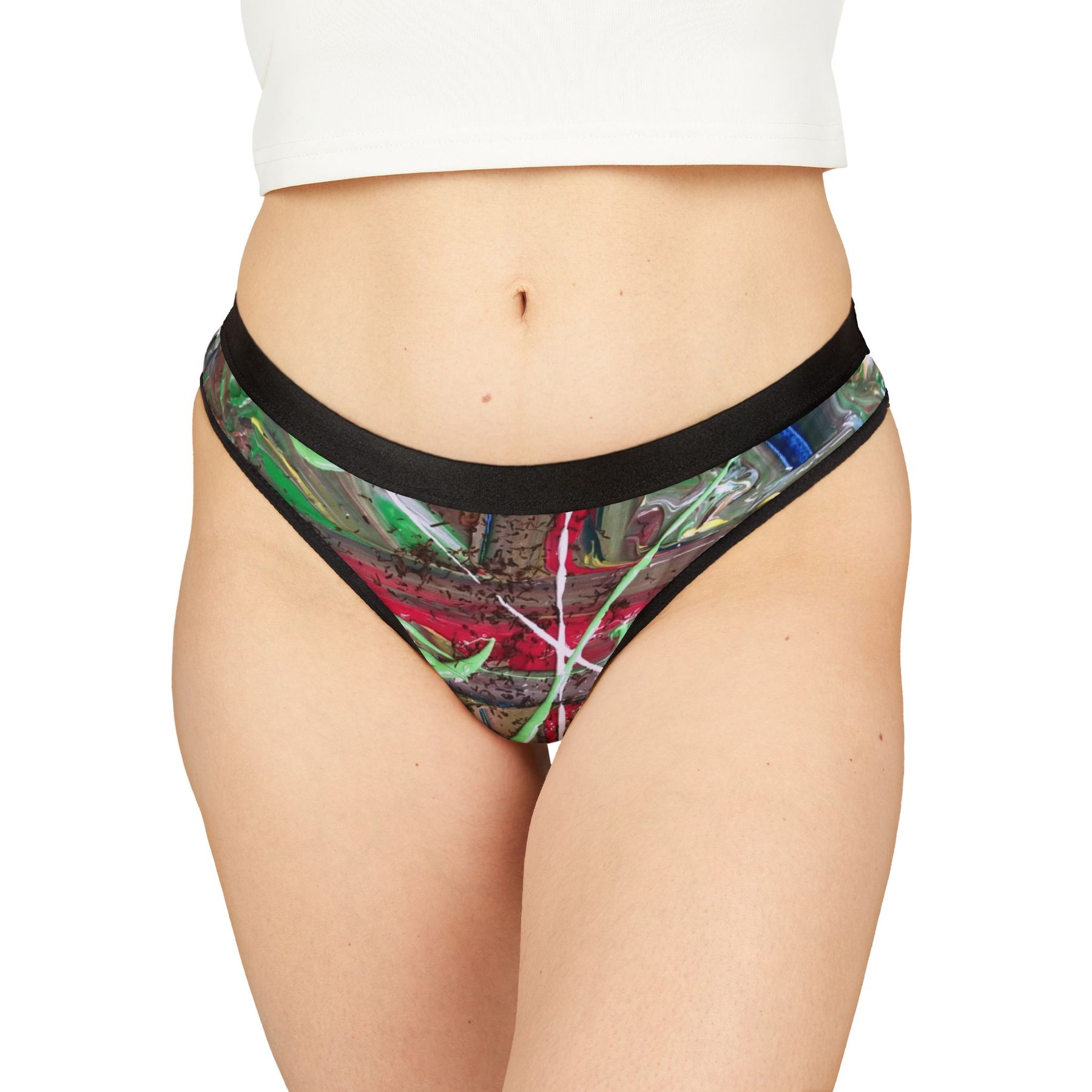 A vibrant, low-rise thong that blends bold street-art energy with everyday comfort. The all-over print shows layered brushstrokes and pops of color that peek through a muted brick-like background, creating a blend of urban grit and playful creativity. Lightweight, breathable fabric and a soft elastic waistband sit smoothly against the skin. Wear it under fitted jeans, a bodycon dress, or when you want a confident, colorful layer that moves with you.