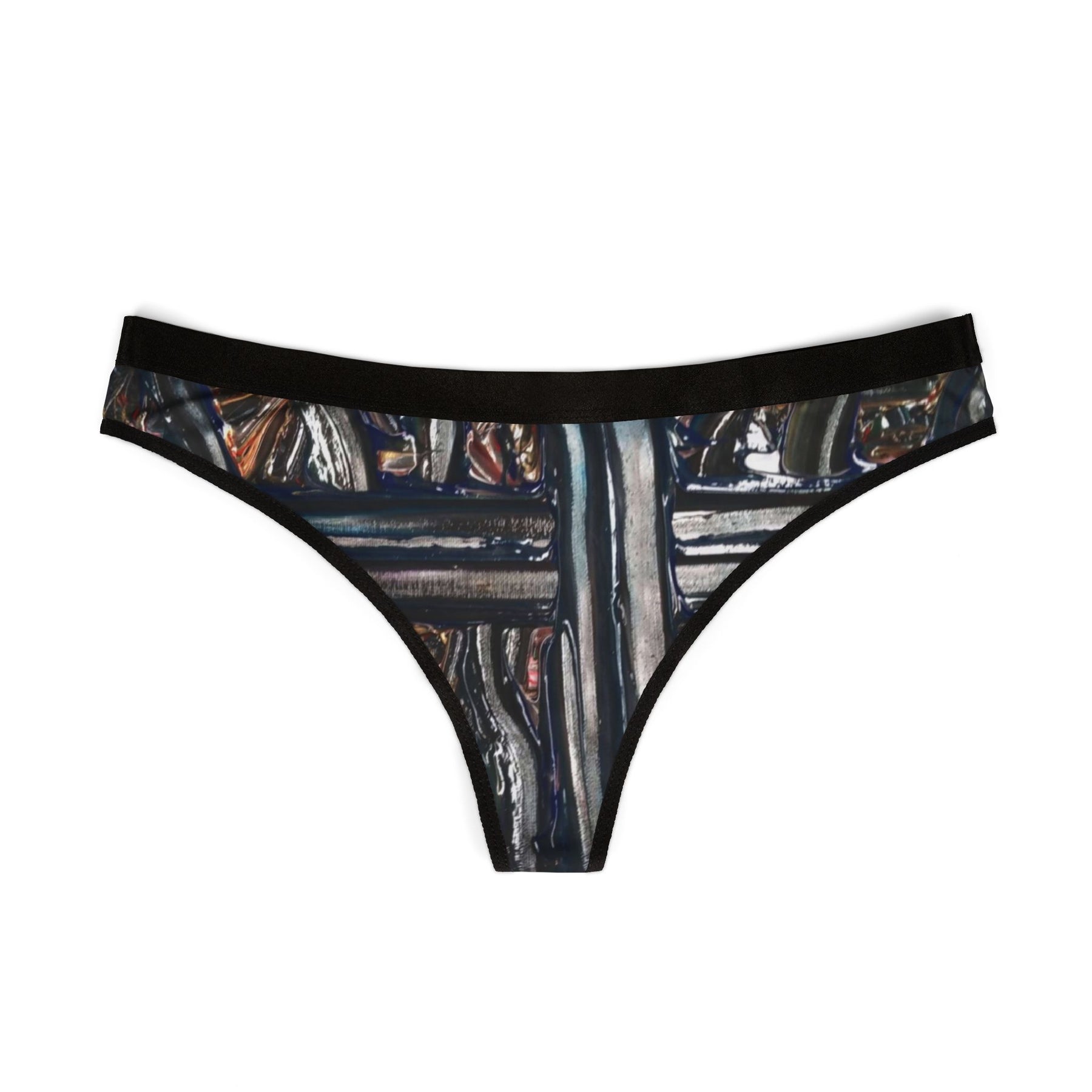 Soft, sleek, and made to move — these printed thongs blend everyday comfort with a hint of daring. The lightweight polyester-spandex fabric stretches four ways and sits smoothly against skin, while the wide elastic waistband keeps the silhouette secure without digging in. The muted, painterly print framed by black trim reads subtle and artful under clothes or as a quiet, personal detail on its own. Breathable, antimicrobial performance helps you stay fresh through long days. Wear them when you want underwear that feels effortless and confident — from hectic city mornings to slow evenings at home.