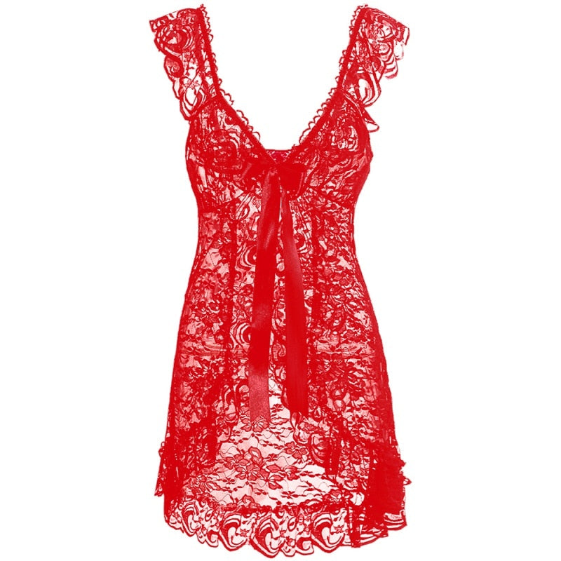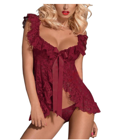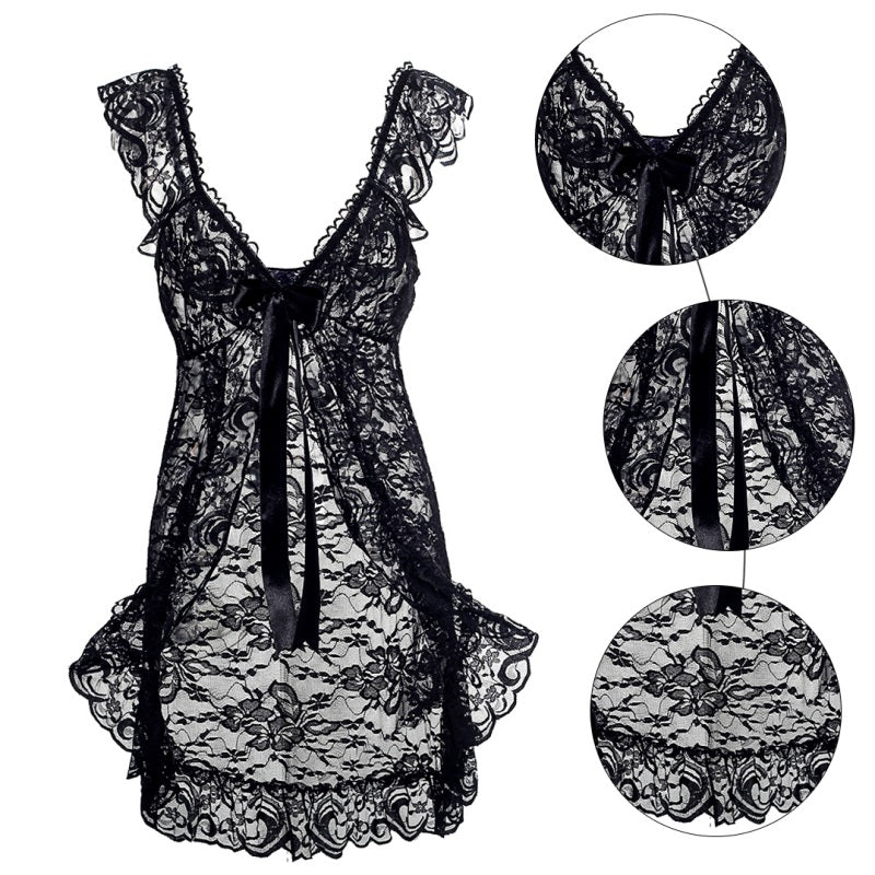 Crafted from a luxurious blend of spandex, mesh, and lace, this lingerie not only offers a comfortable fit but also enhances your natural curves. The delicate sheer fabric gracefully drapes over your body, creating an alluring silhouette that is sure to captivate.