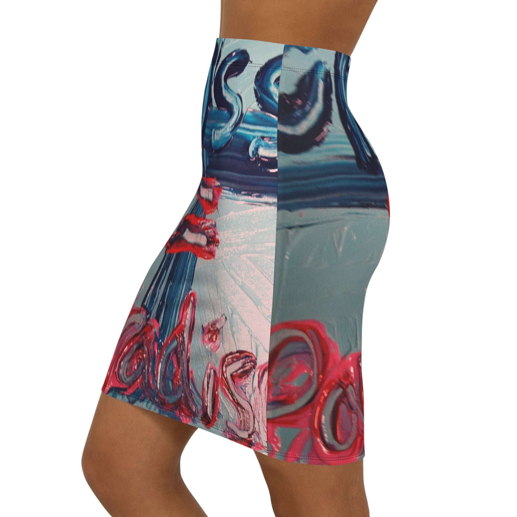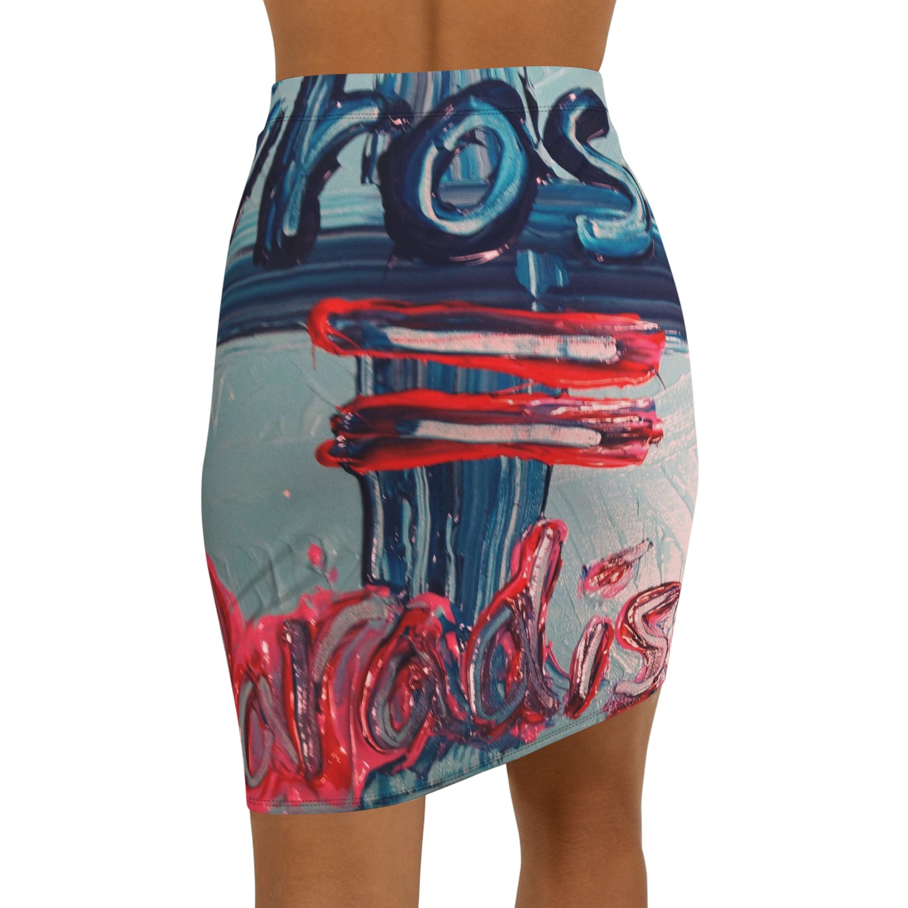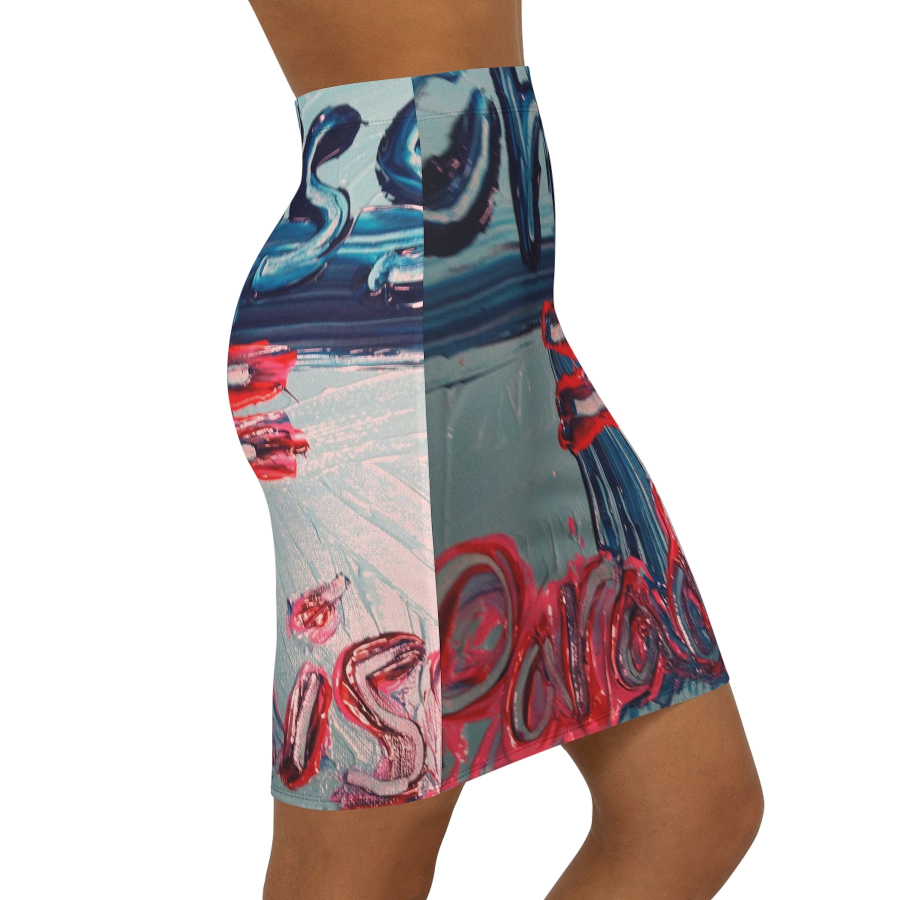 This mid-waist pencil skirt brings a bold, painterly energy to everyday wear. The all-over print captures thick, expressive brushstrokes in saturated blues, pinks, and pops of red, creating a wearable canvas that moves with you. The slim, mid-rise cut flatters the waist and hips while the 4-way stretch fabric lets you sit, stride, and dance without restriction. An elastic waistband and soft polyester-spandex blend deliver comfort alongside the vibrant, gallery-ready look. Wear it layered with a cropped sweater for cool evenings or pair with a simple tee for a city-street art moment.