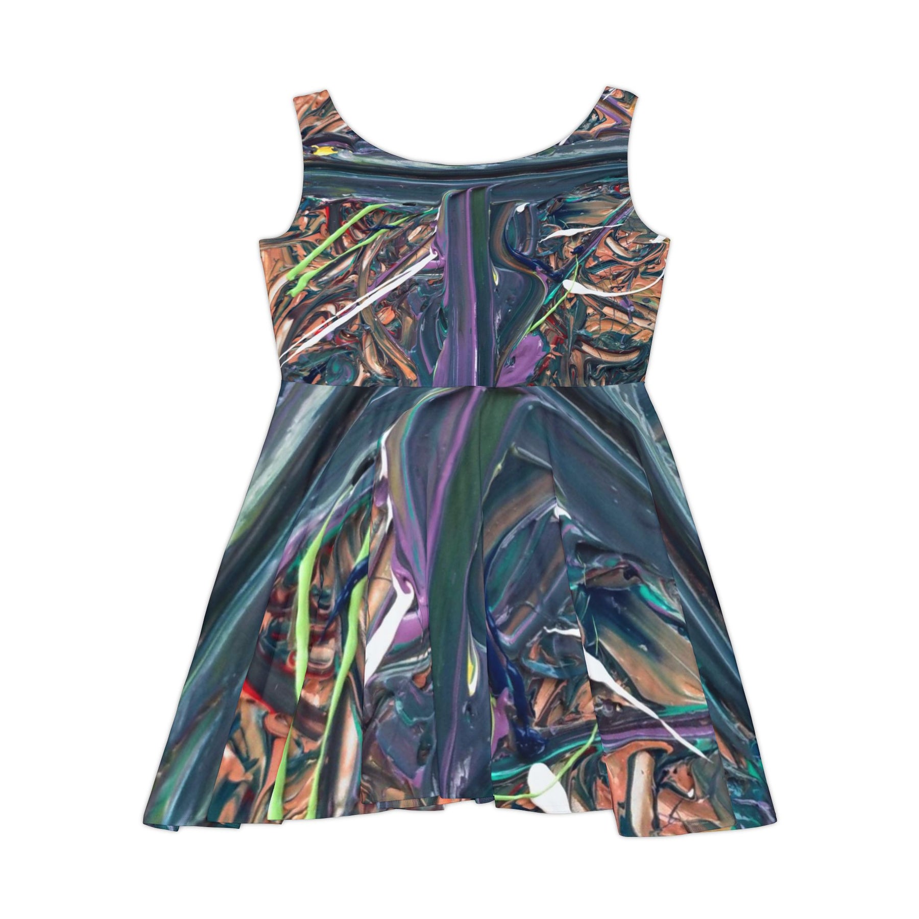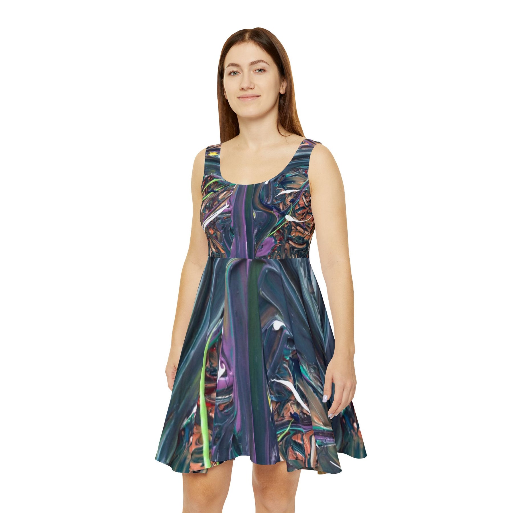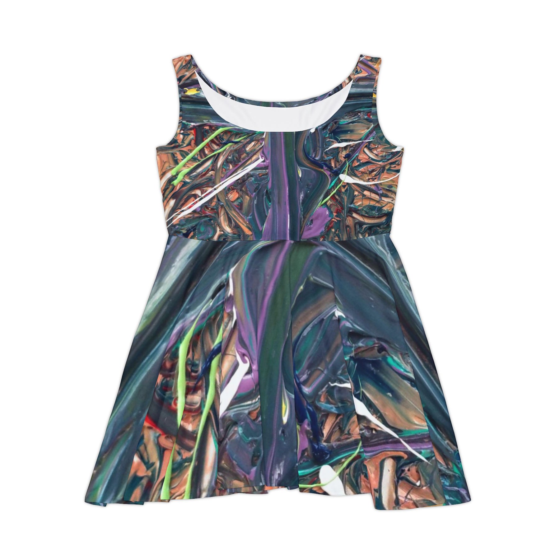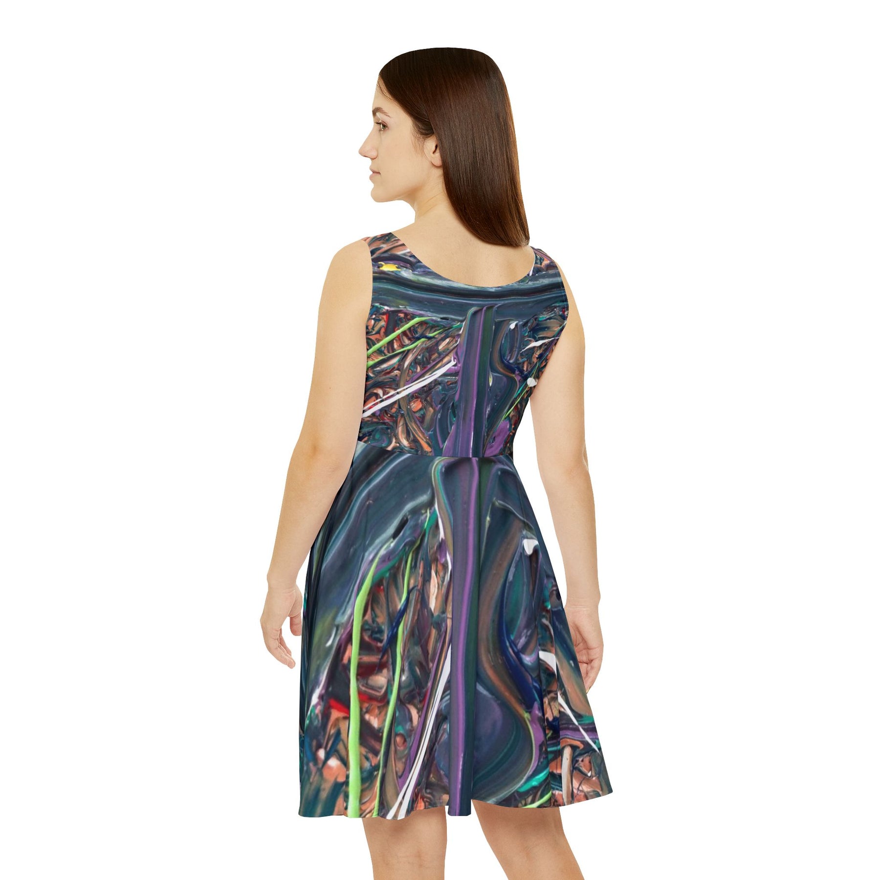 Abstract Metallic Swirl Skater Dress – Iridescent Art Print Printify