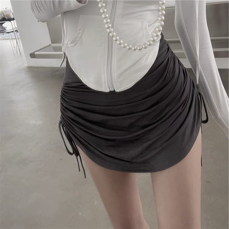 Crafted from high-quality polyester fiber, this skirt is lightweight and breathable, making it perfect for all-day wear. The unique collage/splicing craft gives it a modern edge, while the popular drawstring and stitching elements add a touch of sophistication. Available in classic shades of white, black, and dark gray, this skirt can easily transition from day to night, pairing well with a variety of tops and accessories.
