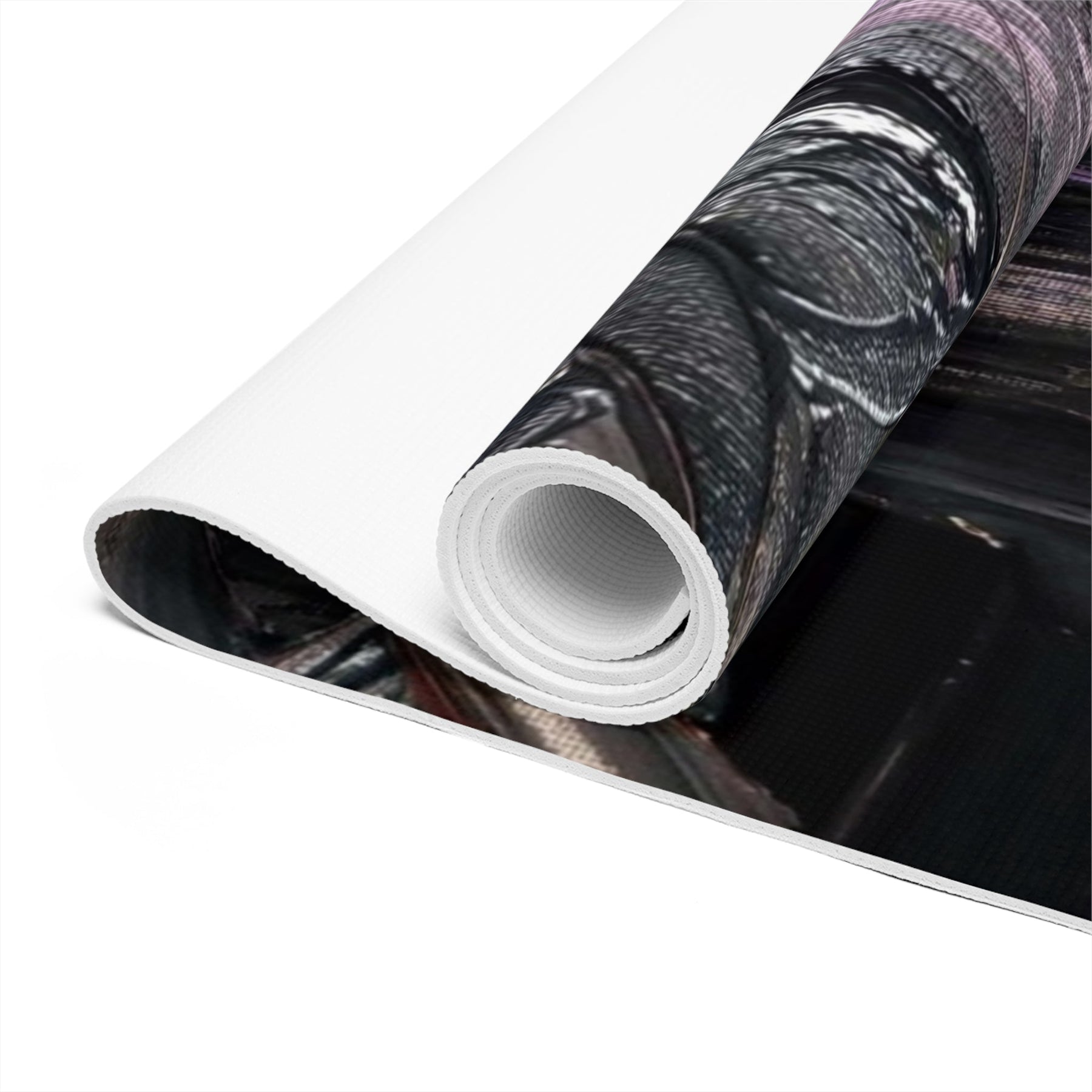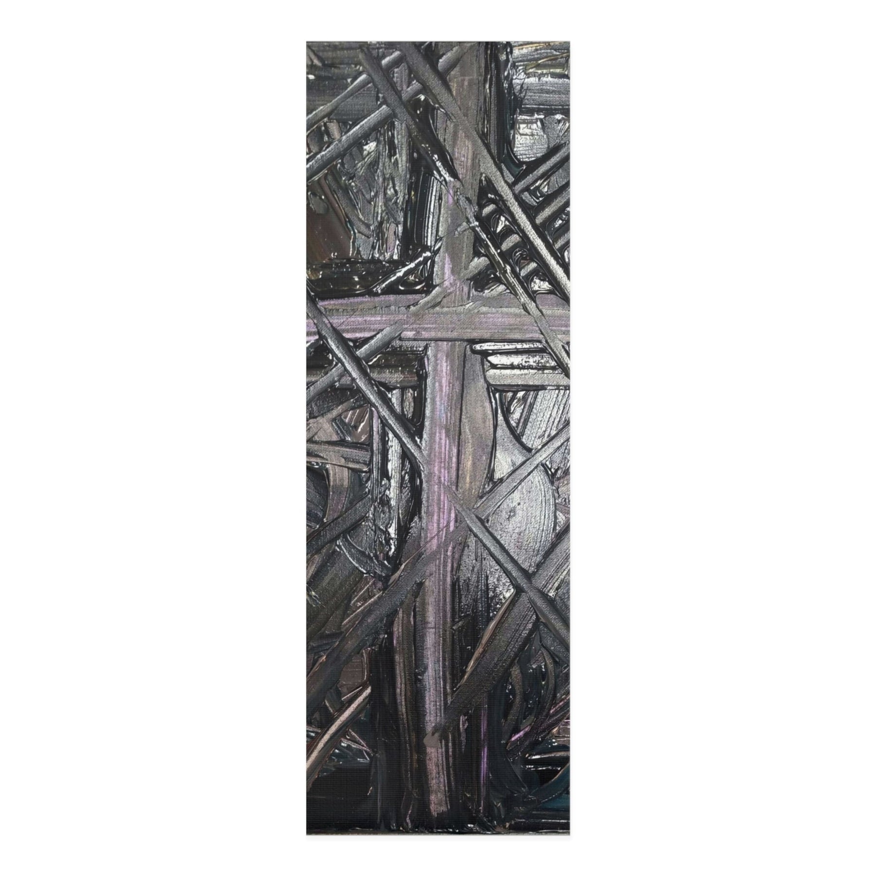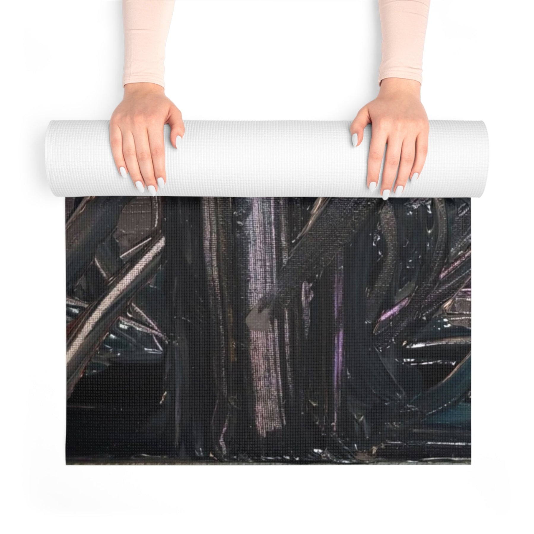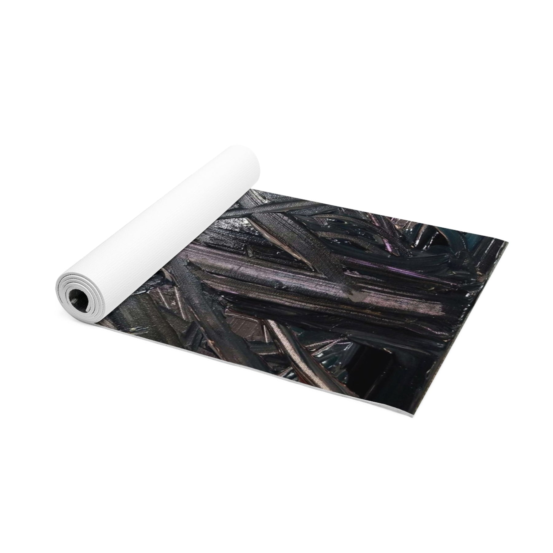 This foam yoga mat channels quiet intensity. The dark, layered brushstrokes create a moody, almost meditative surface that anchors breath and movement. Each pose feels grounded against the soft but stable foam, while the anti-slip texture keeps focus on alignment instead of shifting. The slim profile and edge-to-edge print let the artwork read clearly without bulk, and the lightweight construction makes it easy to carry from studio to street. Use it for slow flow, deep stretching, or as a tactile base for bodyweight work — it holds you steady and deepens the sense of presence with every practice.