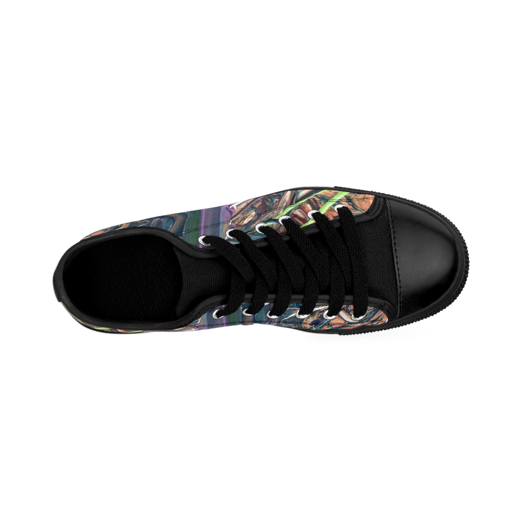 These low-top canvas sneakers bring street-ready attitude with an artsy, abstract print and durable construction. The nylon canvas upper has a fine weave feel and a foam lining for immediate comfort, while the pleather-covered toe and sturdy rubber outsole stand up to everyday wear. Metal eyelets, breathable foam insoles, and a lightweight build keep them practical for long days on the move. The design’s layered, painterly textures and moody color palette make them a subtle statement piece that slips easily into a creative, urban wardrobe.
