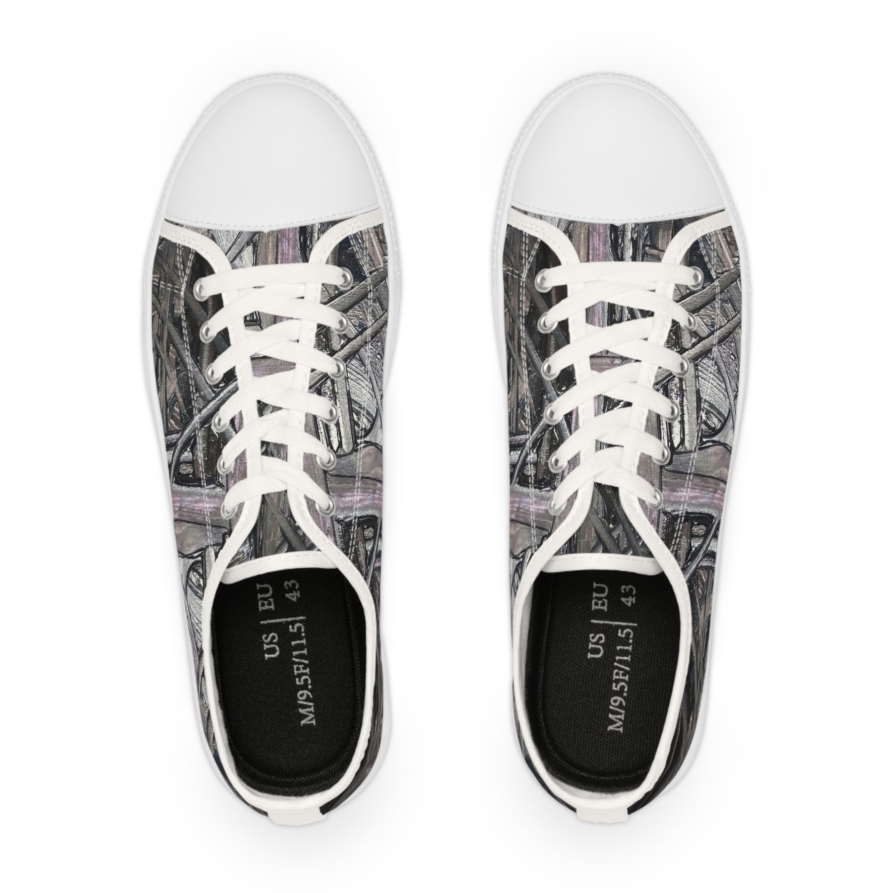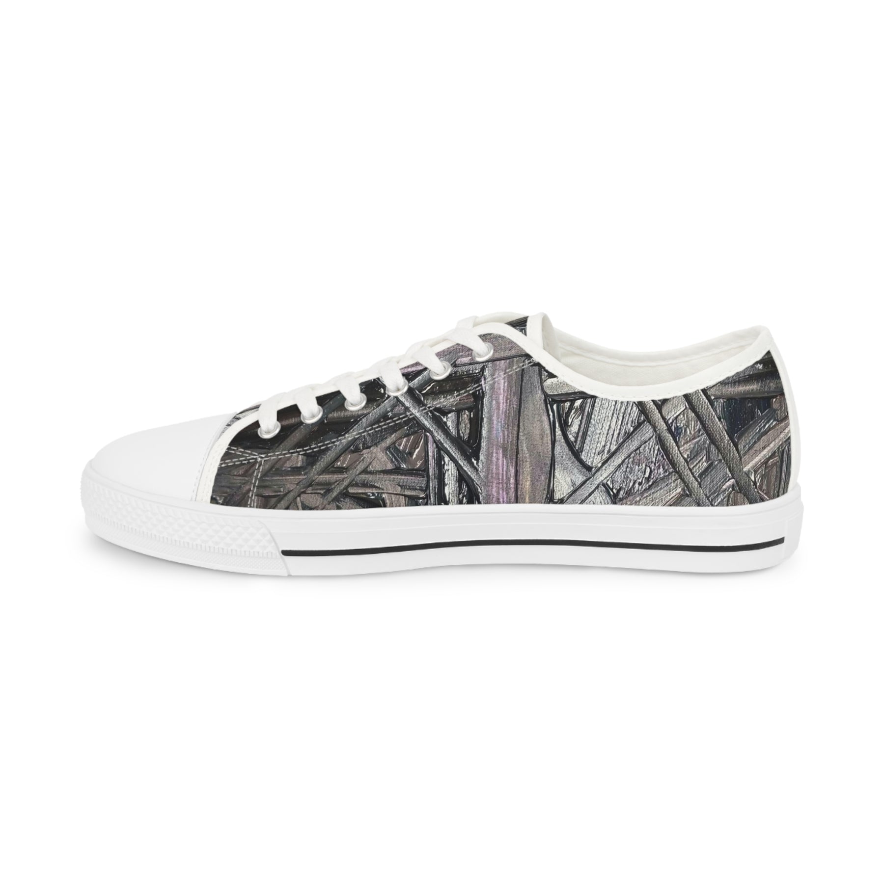 These low-top sneakers bring city grit and quiet texture into everyday steps. The canvas upper carries a muted, layered print that reads like weathered wood or braided rope—subtle from a distance, detailed up close. Foam-lined polyester and memory-foam insoles cushion the foot; EVA midsoles and rubber outsoles absorb impact so the shoes stay comfortable through commutes, long walks, or weekend wandering. Metal eyelets and pleather toe caps add small flashes of durability and polish. They run slightly large, so those who prefer a snug fit often size down. Wear them with cropped jeans, vintage tees, or a pared-back jacket for a relaxed, handcrafted look.