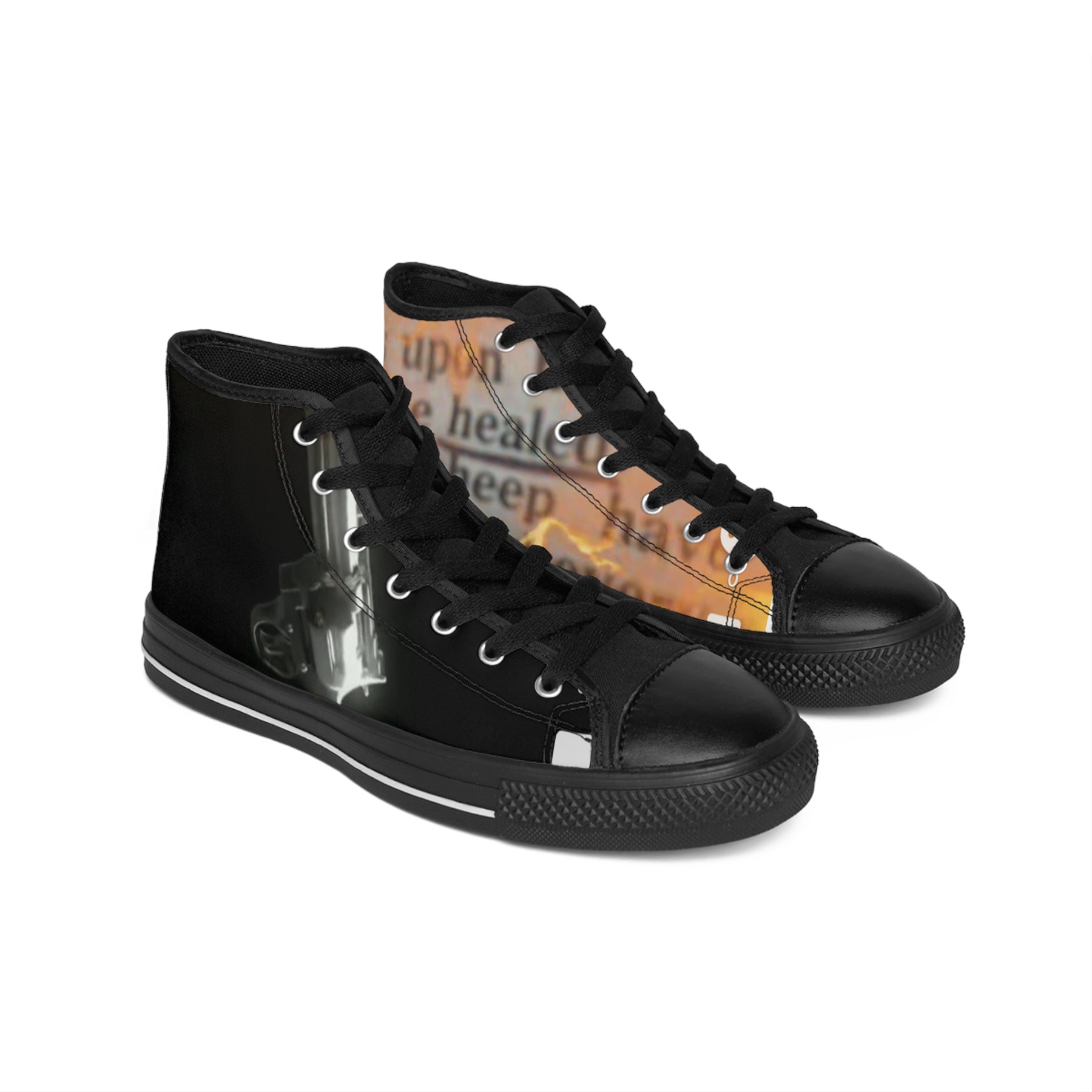 Men's Classic High-Top Sneakers – Gothic Gun & Script Graphic