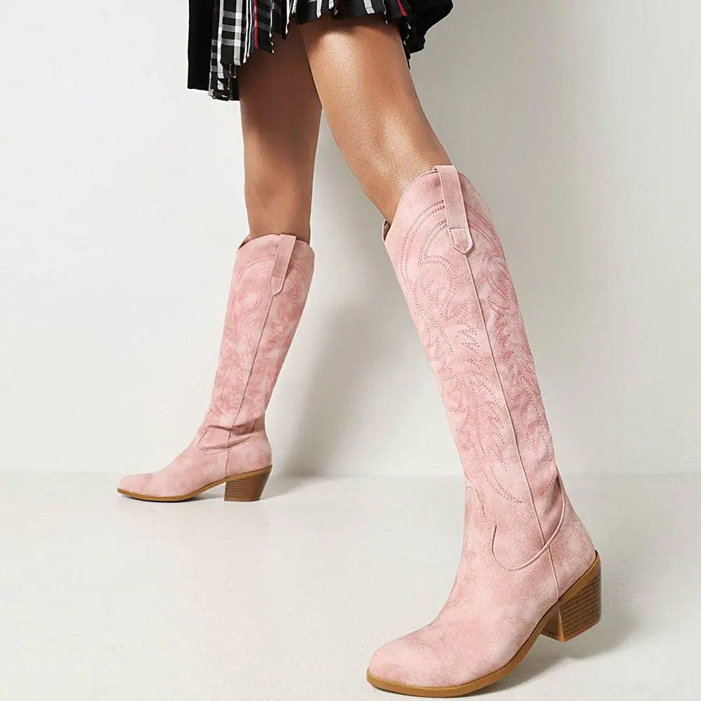 Elevate your footwear collection with our Western Women's High Heel Pointed Toe Rider Boots. Designed for both style and comfort, these boots are perfect for any occasion, whether you're dressing up for a night out or adding a touch of sophistication to your everyday attire. Crafted from high-quality microfiber for a soft and luxurious feel, these boots feature a durable rubber sole that provides excellent traction and stability. The chunky heel not only adds height but also ensures comfort throughout the day, making them suitable for all-day wear. Available in a variety of colors, including classic Black and White, as well as fun shades like Pink, you can find the perfect pair that matches your unique style. With sizes ranging from 32 to 43, there’s a fit for everyone. Don't miss out on the opportunity to step out in style. Check out the stunning visuals of these boots below and find your perfect pair today!