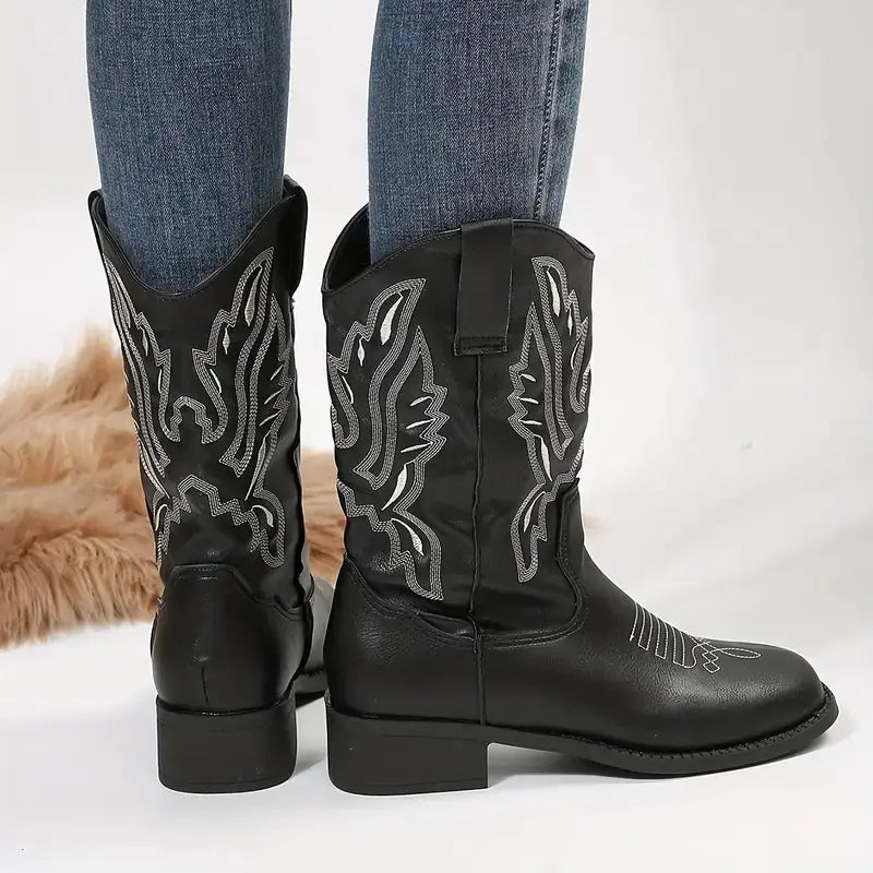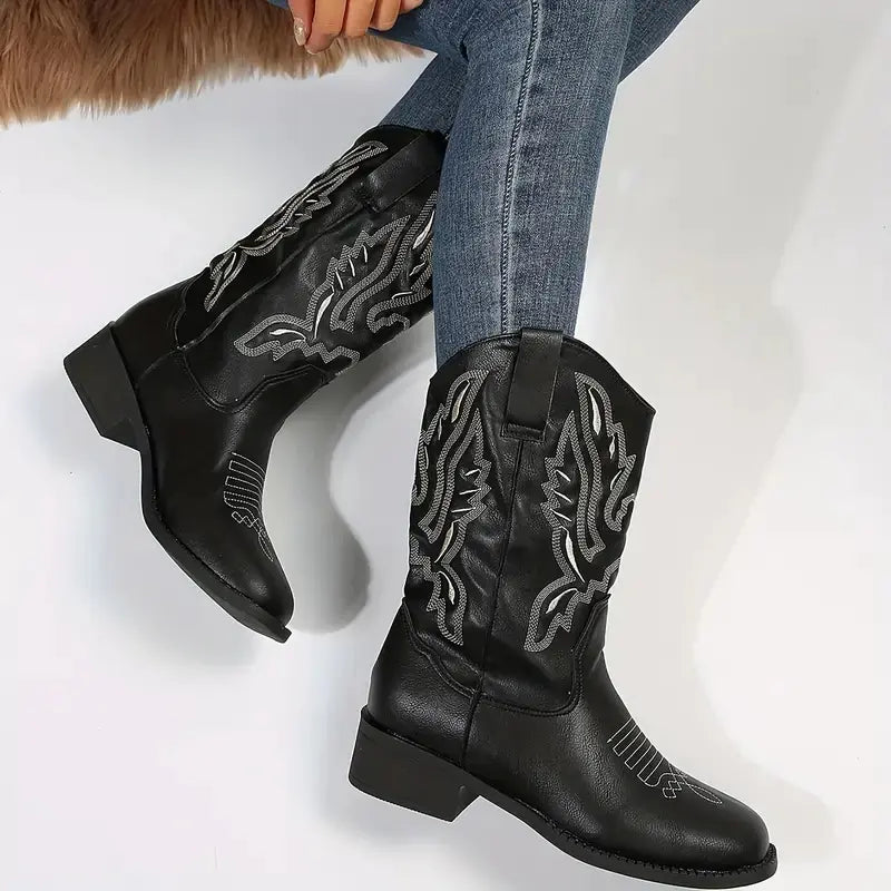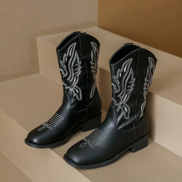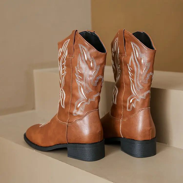 Step into the world of retro charm with our stunning Women's Embroidered Cowboy Boots. Designed for the modern woman who appreciates the blend of classic style and contemporary comfort, these boots are a must-have for your wardrobe. Crafted from premium pigskin, these boots showcase exquisite embroidery that adds a unique flair. The square toe design offers a stylish edge, while the chunky low heel (1-3CM) ensures all-day comfort without sacrificing style. Perfect for any occasion, these boots can effortlessly elevate your casual outfits or complement your evening wear. Available in a rich brown and sleek black, you can choose from a variety of sizes ranging from 34 to 43 to find your perfect fit. Each pair is built with a durable rubber sole that promises longevity and grip, making them ideal for both city strolls and country escapades. Whether you're dressing up for a night out or simply looking to add an eye-catching piece to your everyday ensemble, our Women's Embroidered Cowboy Boots will not disappoint. Check out the stunning visuals below to see these beauties up close!