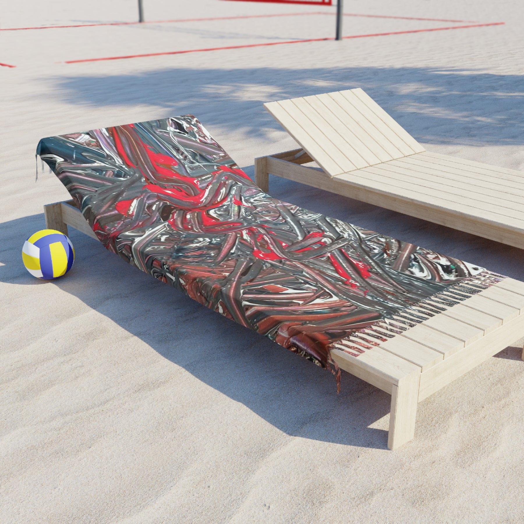 Boho Beach Towel — Abstract Red & Gray Textured Fringe Beach Cloth