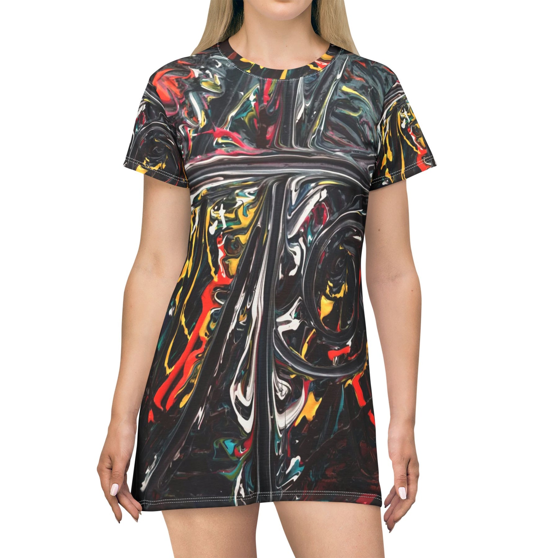 Abstract Art T-Shirt Dress - Colorful Artistic Design for Casual Wear