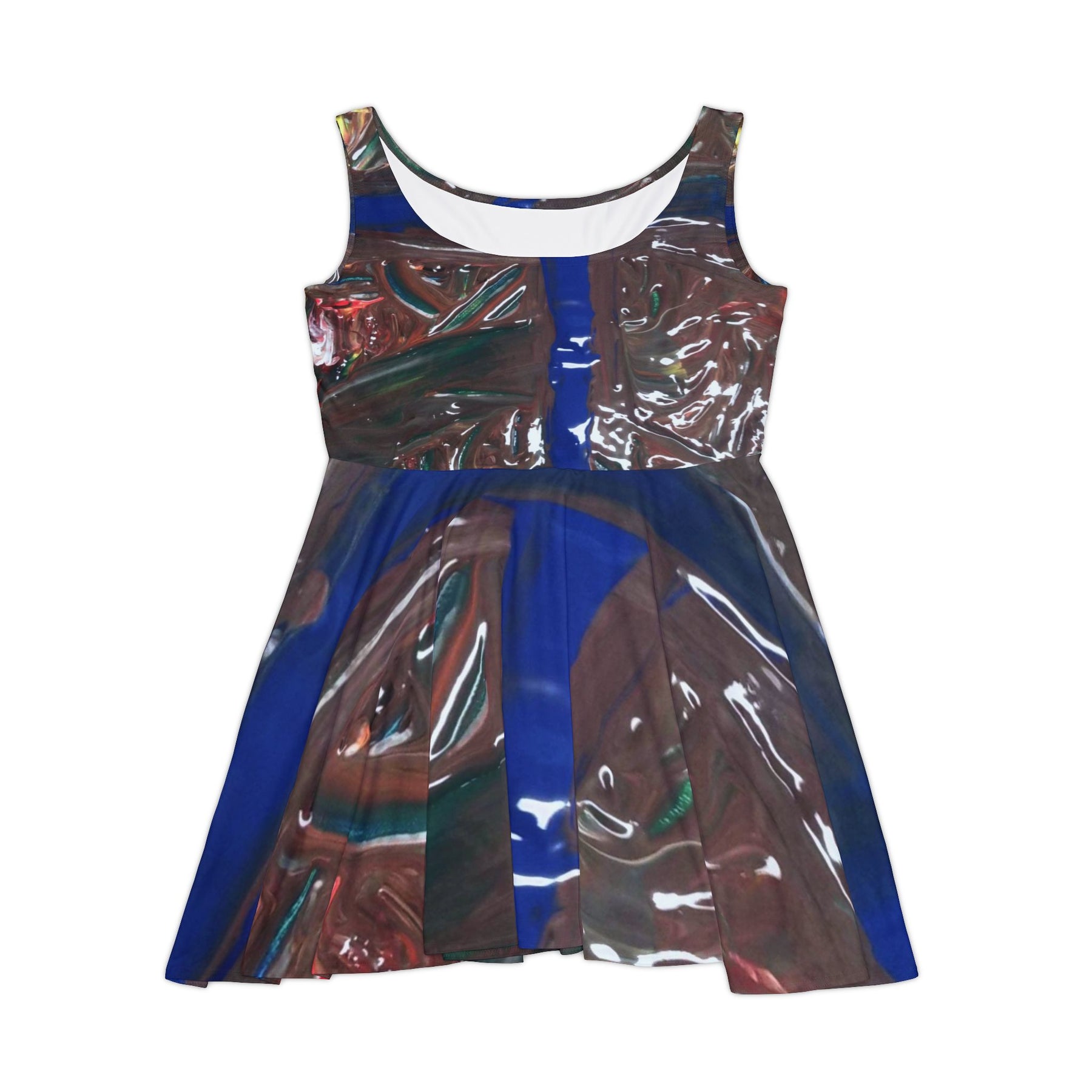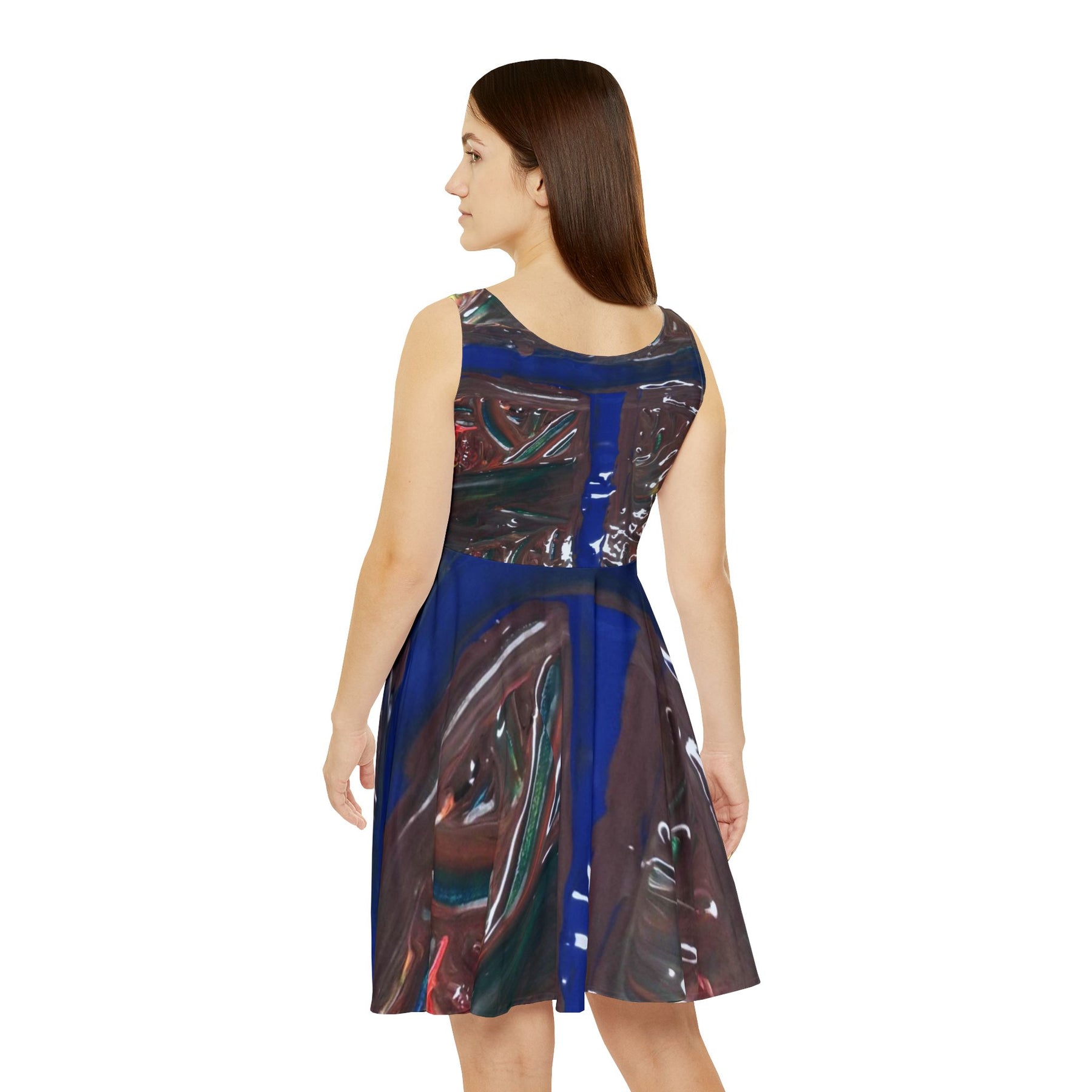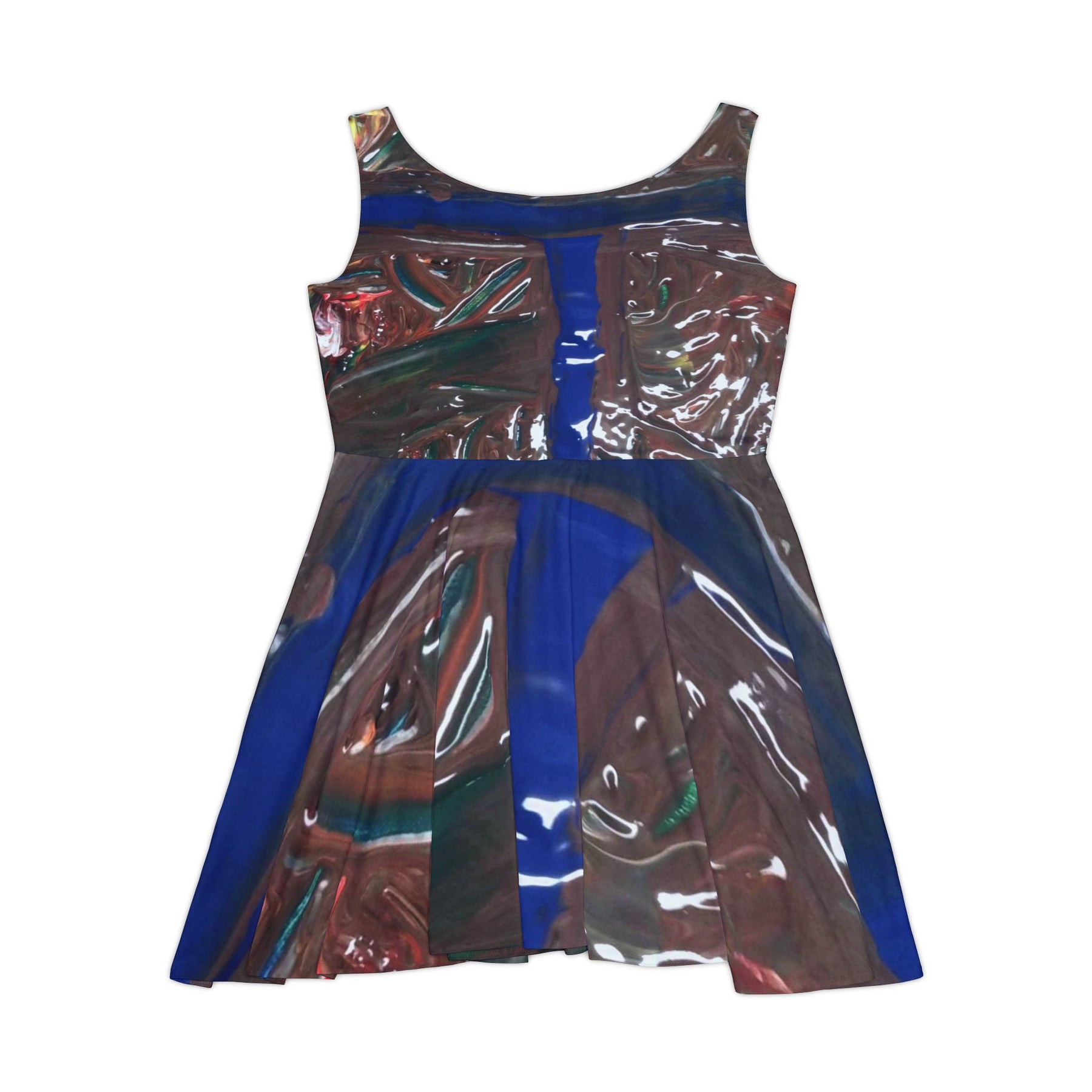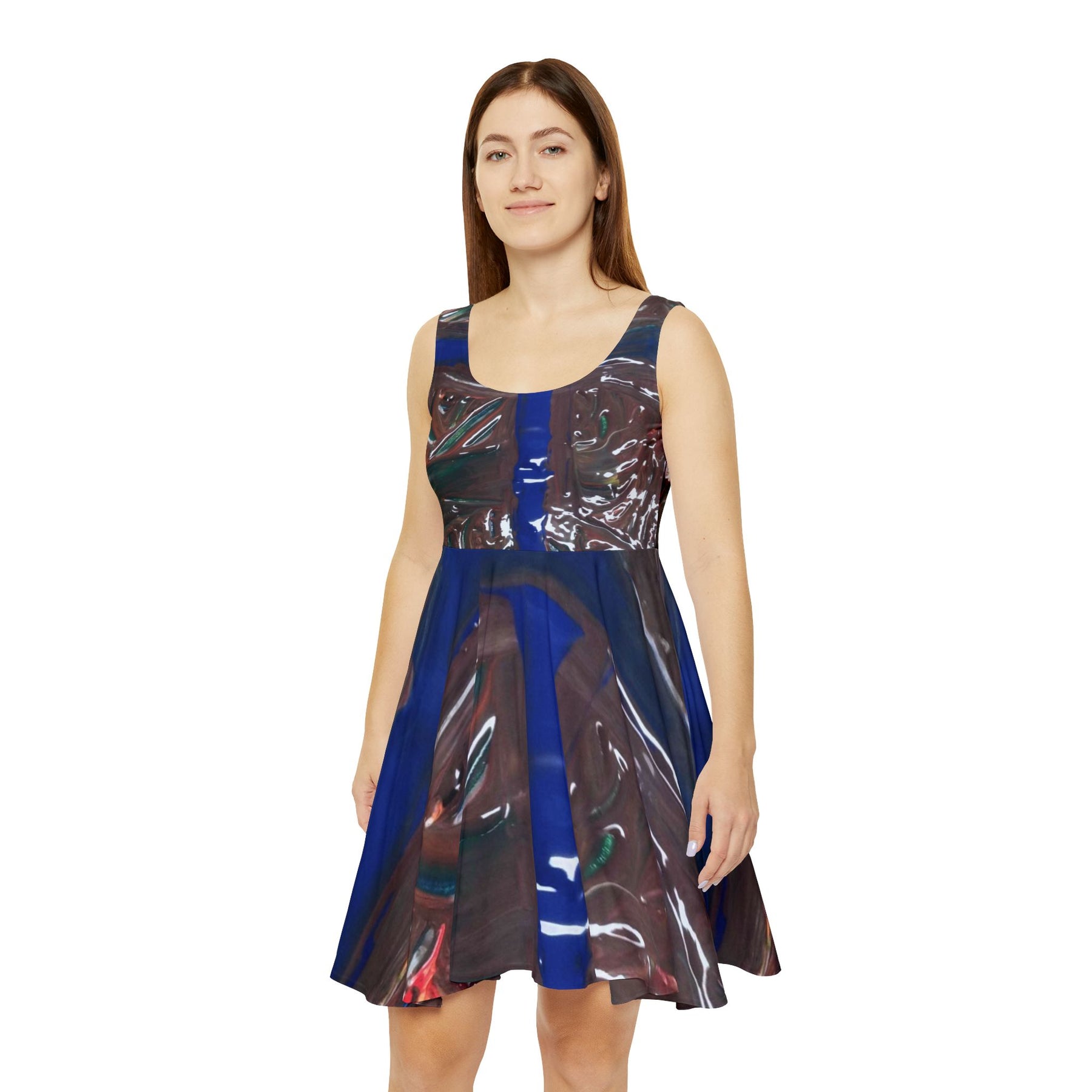 Abstract Blue Resin Print Skater Dress — Glossy Liquid Art AOP Printify