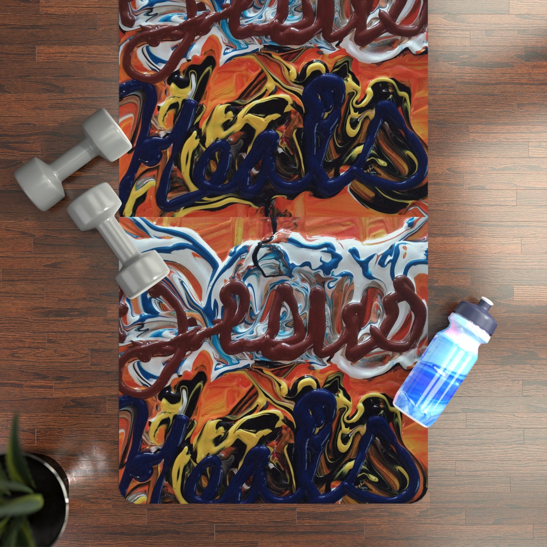 This rubber yoga mat brings expressive color and dependable performance to your practice. The microfiber suede top feels soft against the skin while the natural rubber bottom and anti-slip backing keep the mat firmly in place during flowing sequences and steady holds. At 3mm thickness it’s lightweight and easy to roll with the included black polyester carrying strap — great for commuters, studio-goers, and home practitioners who want vivid, edge-to-edge artwork without sacrificing traction. Keep it out of direct sunlight to preserve color vibrancy. Use it for morning flows, post-work stretch breaks, or as a compact travel companion that adds personality to every pose.