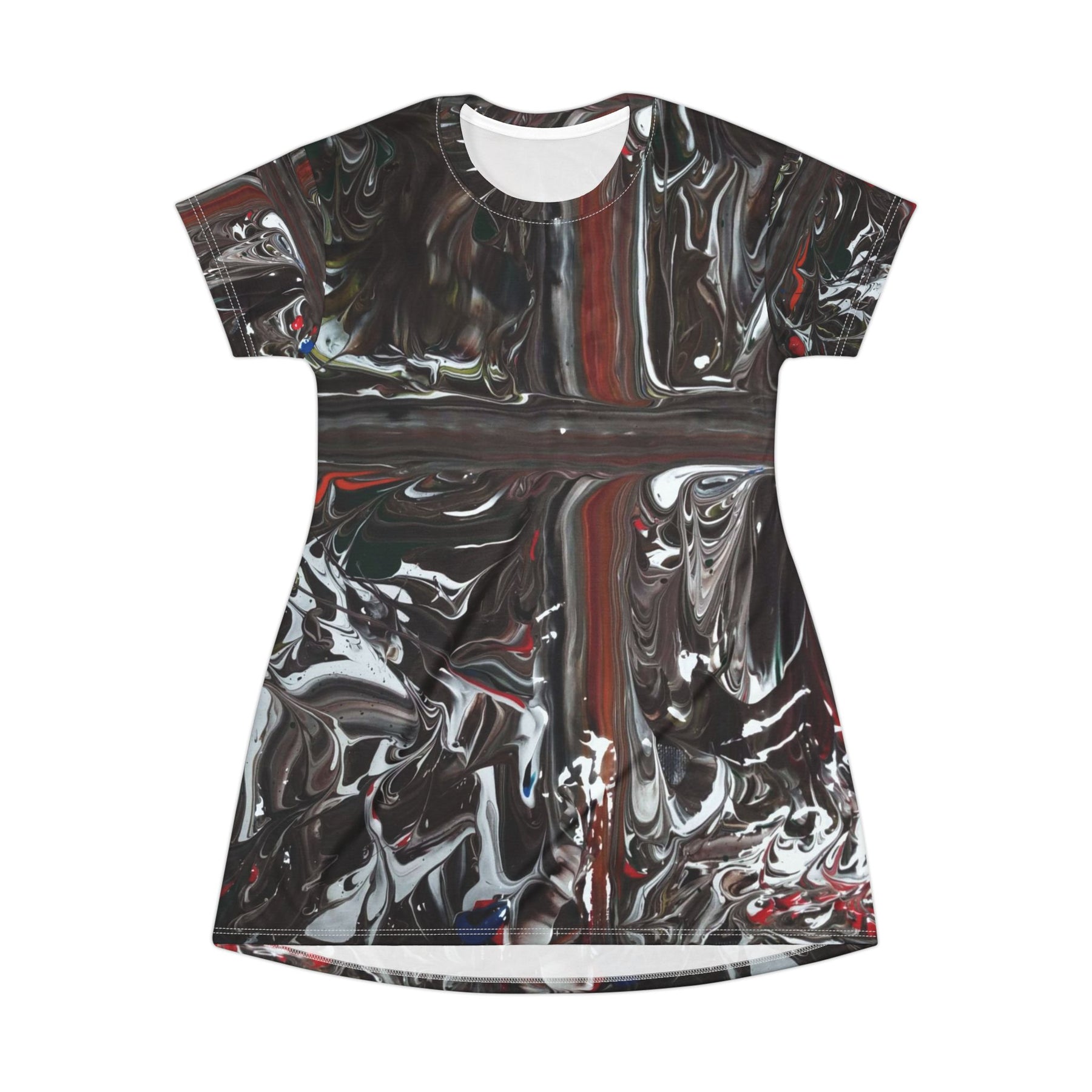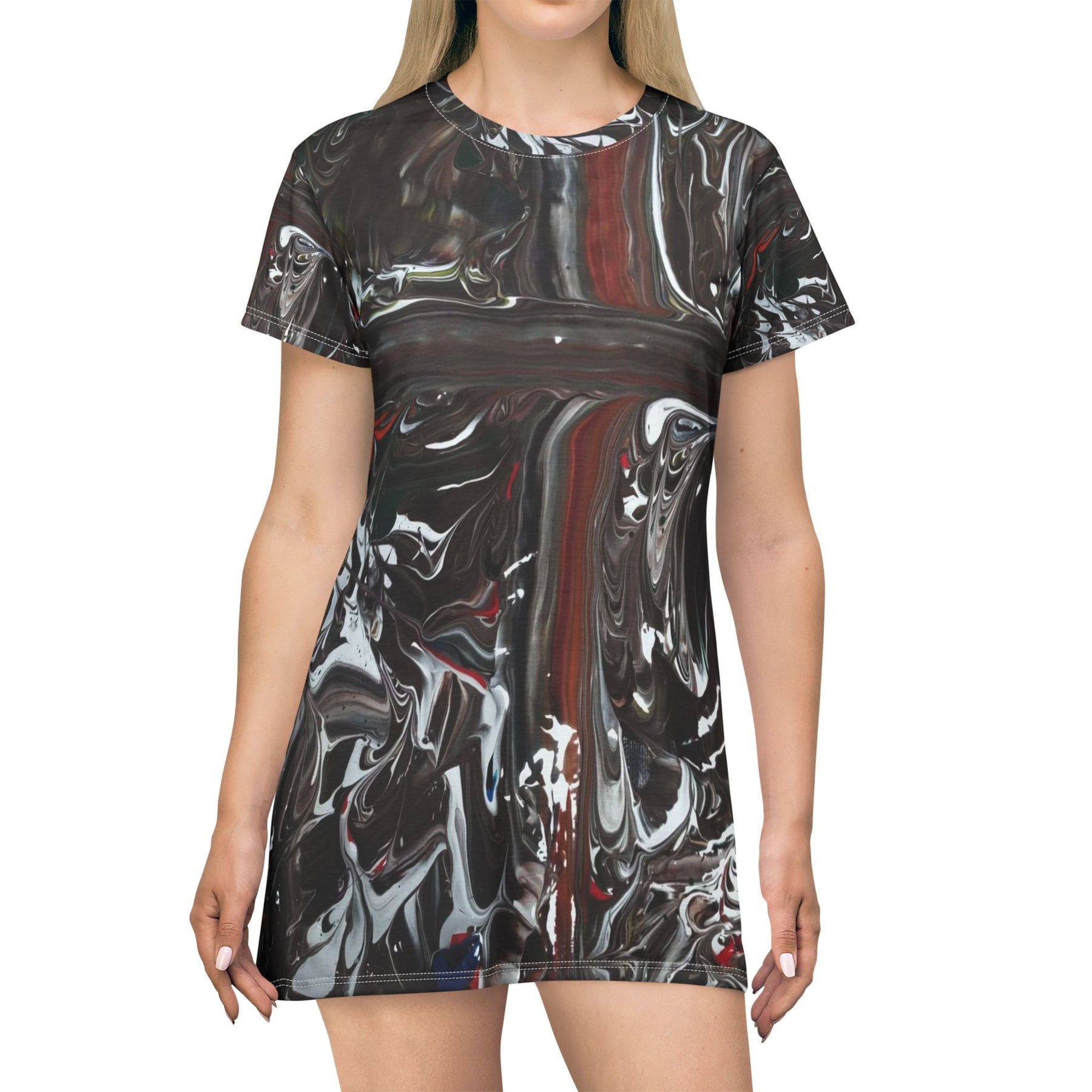 Abstract Metallic Swirl T-Shirt Dress Printify