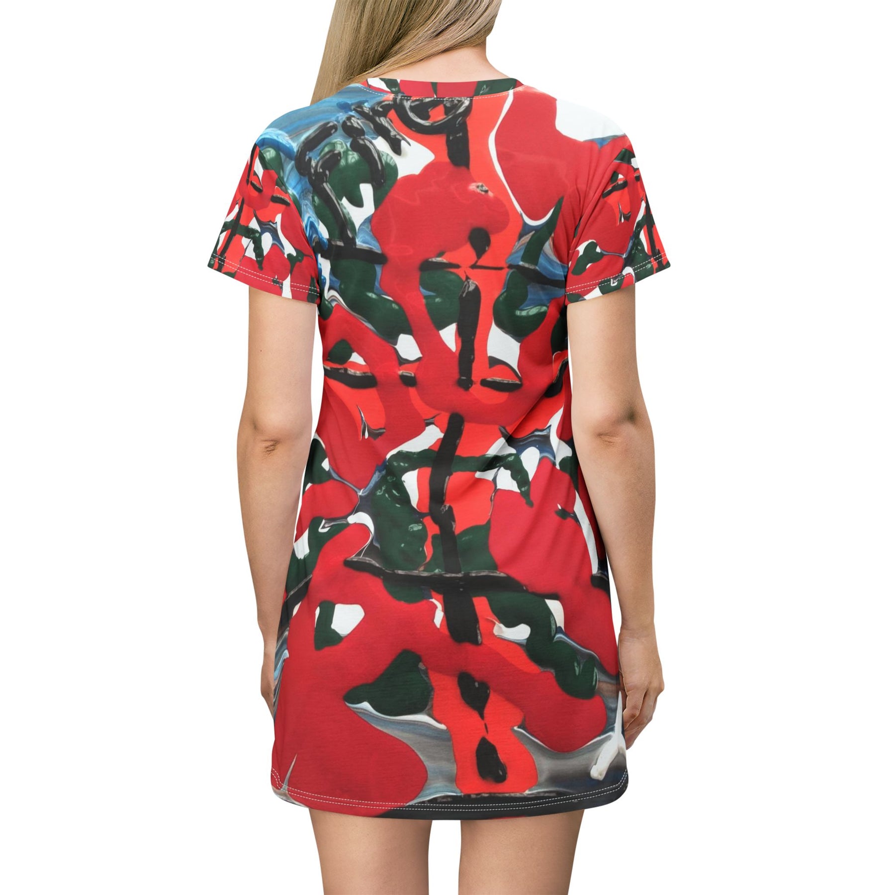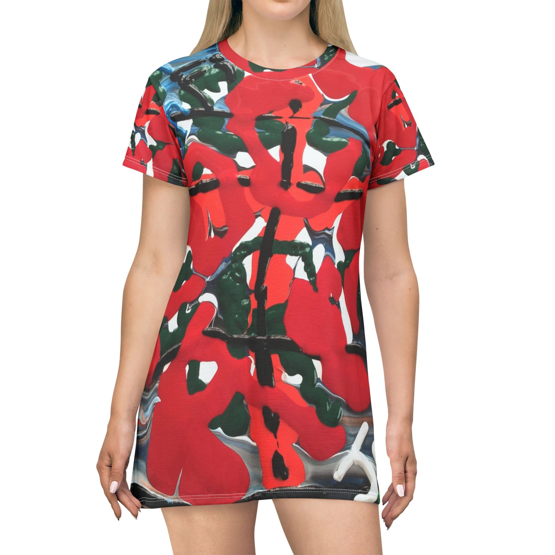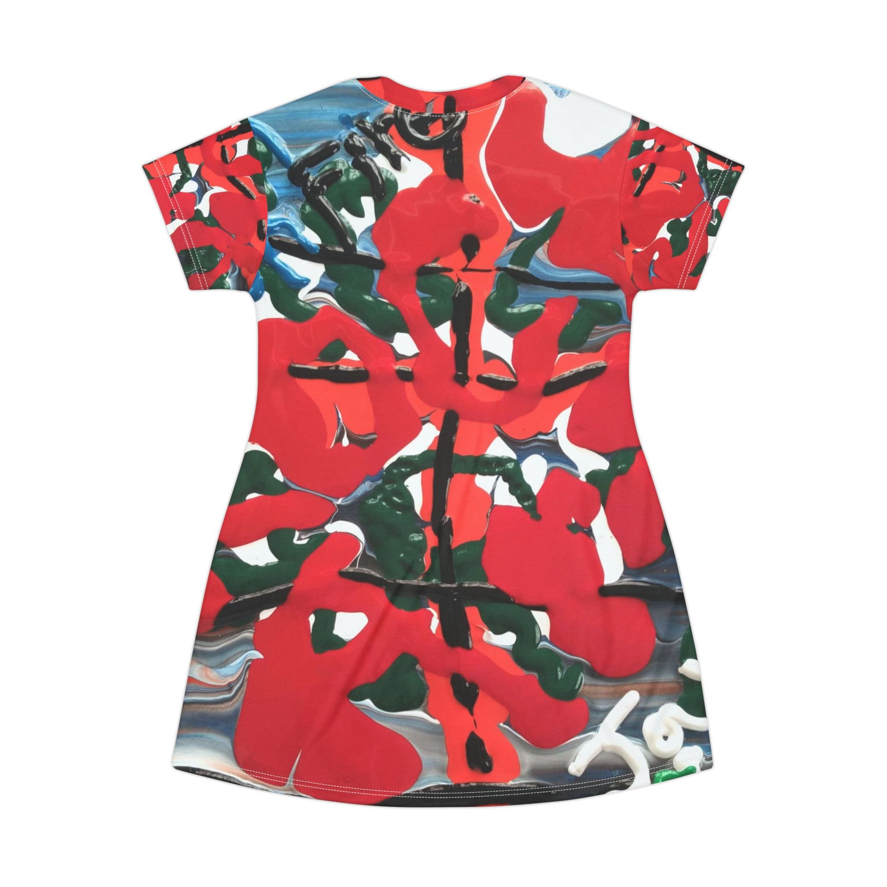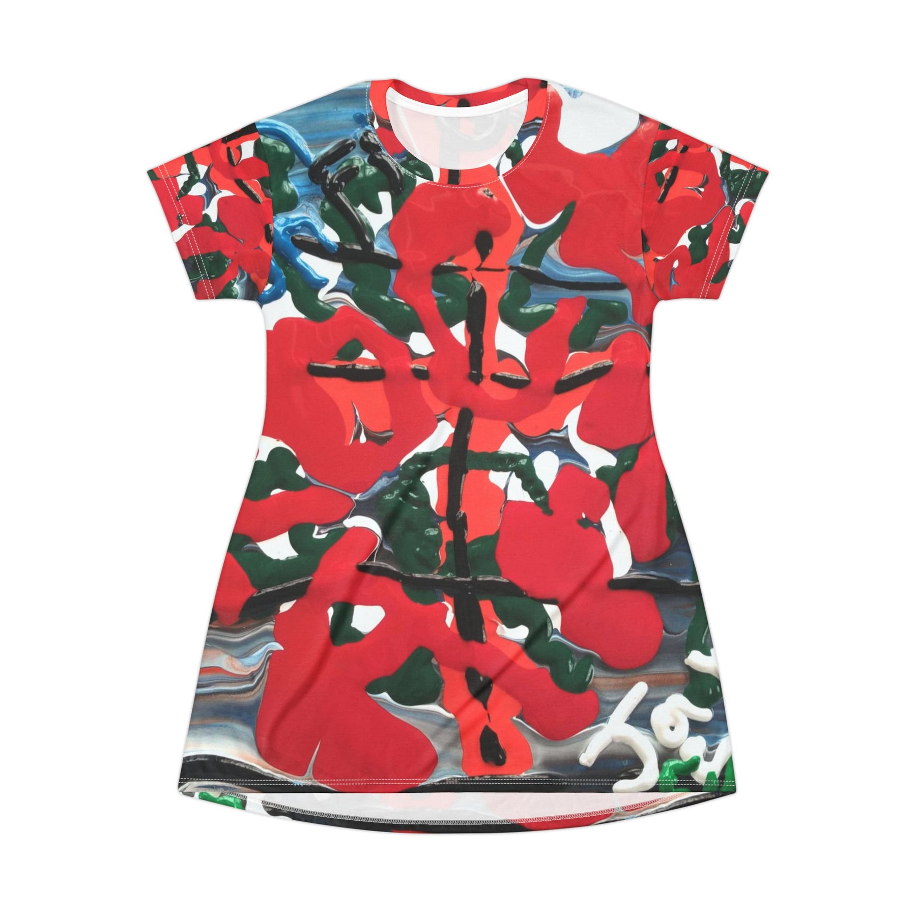 Abstract Red Floral All-Over Print T‑Shirt Dress Printify