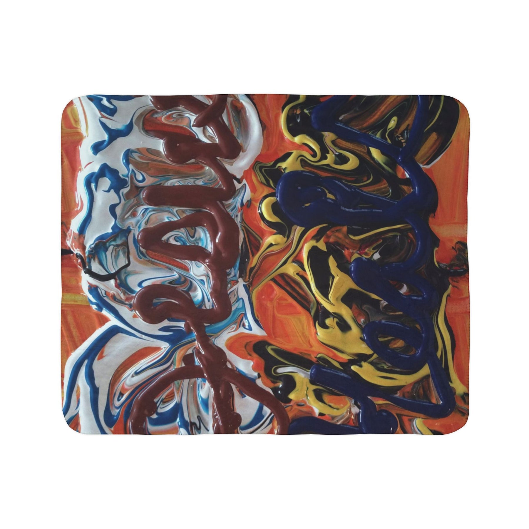 Wrapped in deep, painterly swirls of burnt orange, cobalt, and sunlit gold, this fleece sherpa blanket feels like a warm studio evening folded into a cozy throw. The double-sided plush holds heat without weight; the hemmed edges and matched seam thread keep the look clean after many washes. Drape it over a couch while you read, throw it across a chair in a creative nook, or pull it up on chilly nights to settle into color and texture. The artwork’s bold, abstract strokes spark conversation and soothe restless minds — made for people who love tactile comfort and lively, expressive design.