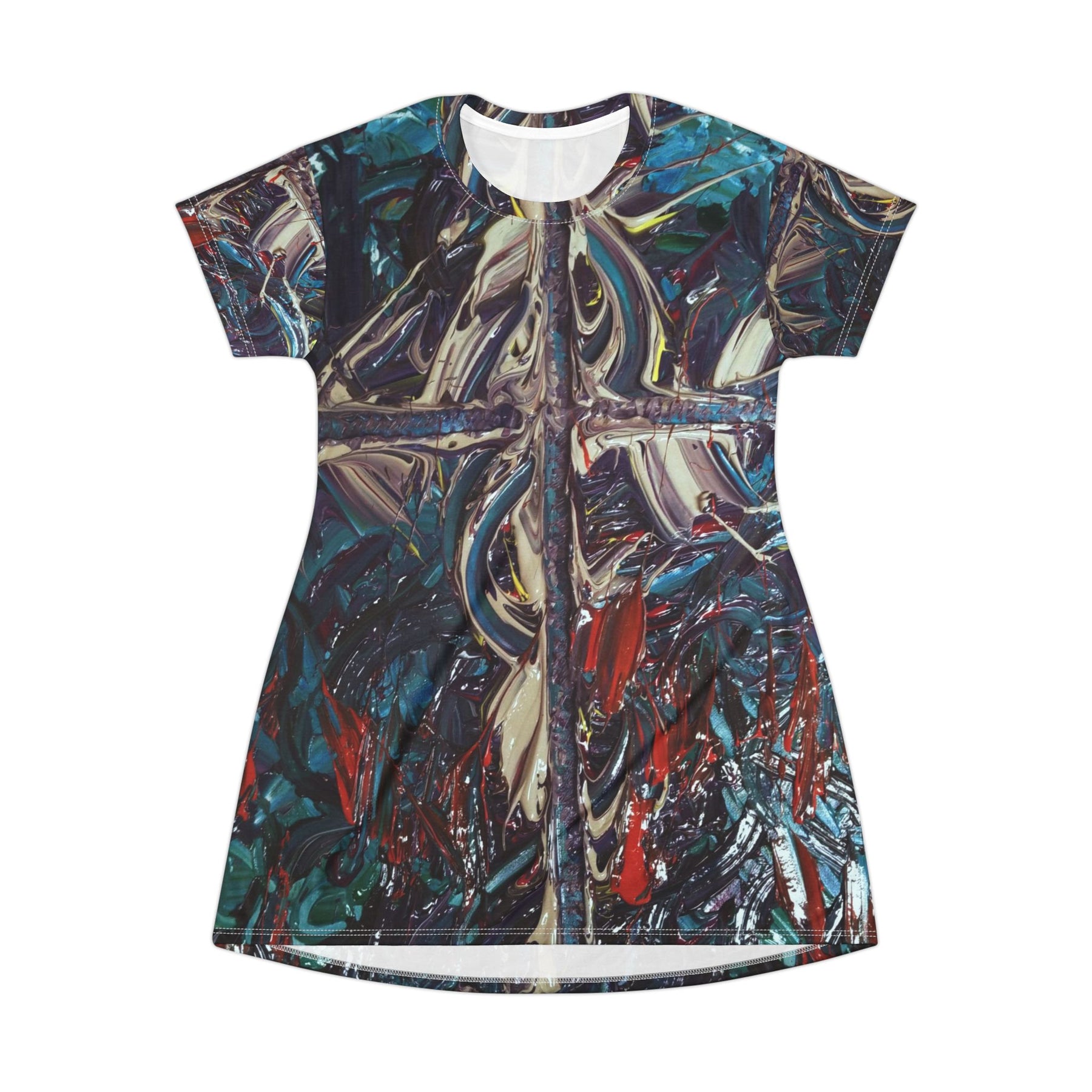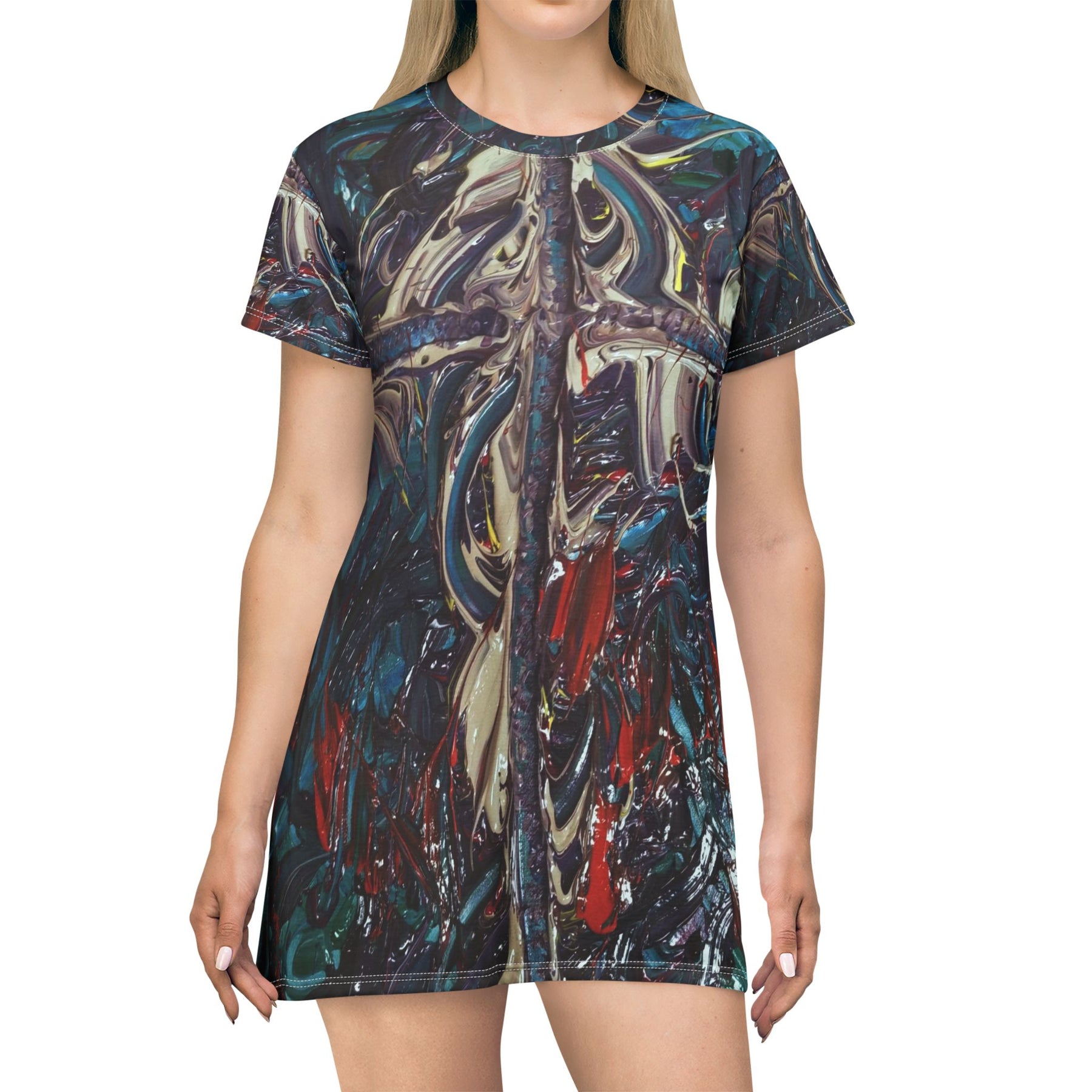 Introducing a stunning T-Shirt Dress that blends comfort with artistic flair. This vibrant and expressive garment boasts an all-over print that’s sure to turn heads. Whether you're enjoying a casual day out or dressing up for a casual gathering, this dress offers versatility and style. The lightweight fabric provides excellent breathability, making it perfect for warm weather. It’s a great choice for art lovers and trendsetters alike, adding a touch of creativity to anyone’s wardrobe. Celebrate special occasions like summer outings, art festivals, or cozy gatherings with friends in this eye-catching piece. Ideal for those looking to make a statement without sacrificing comfort.