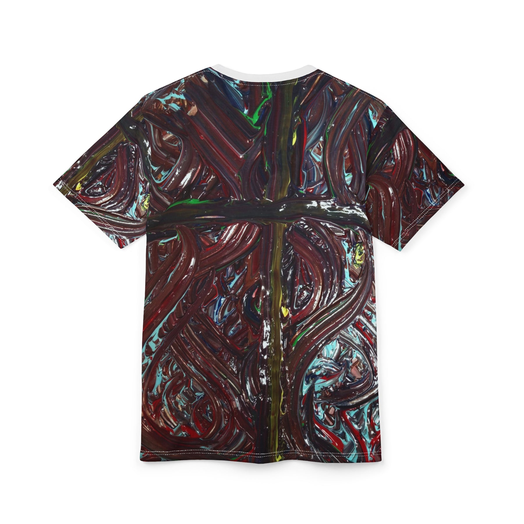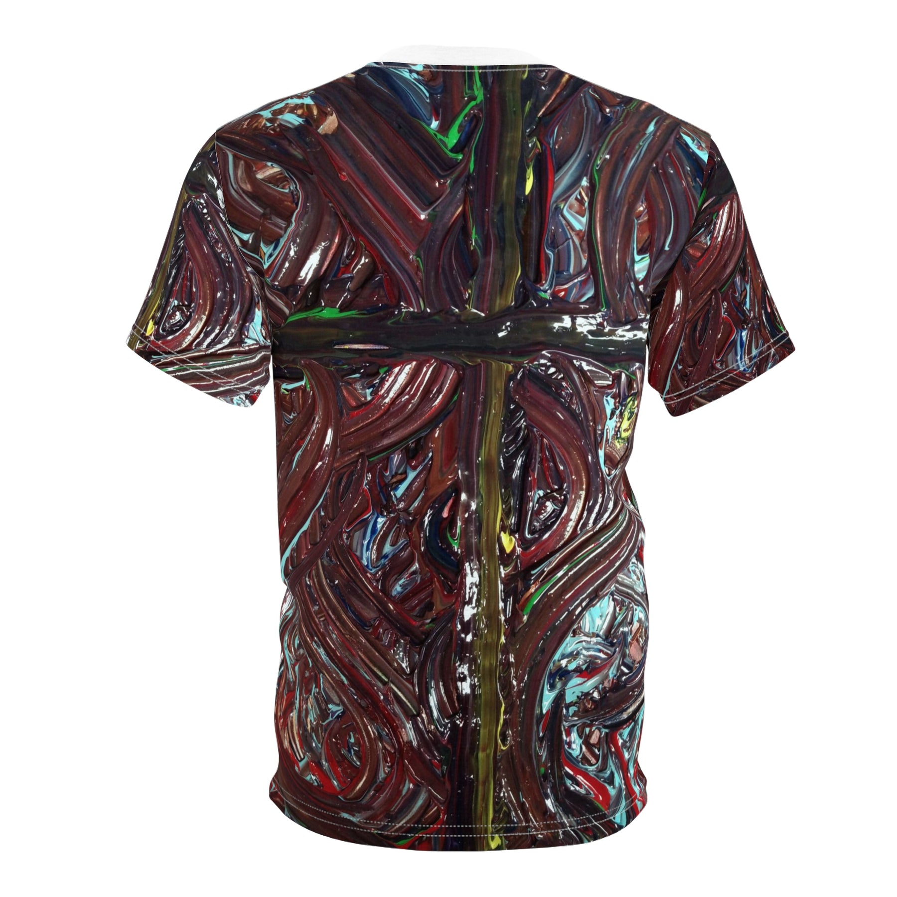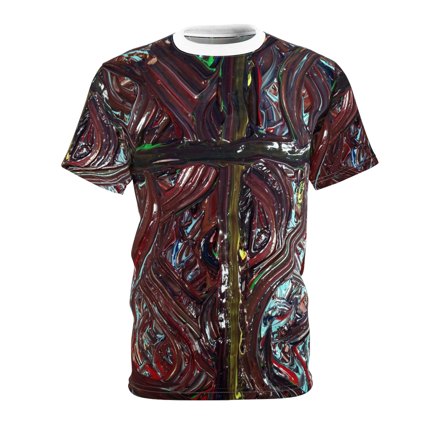 Artistic Cross Unisex Tee - Vibrant AOP Shirt for Faith & Expression