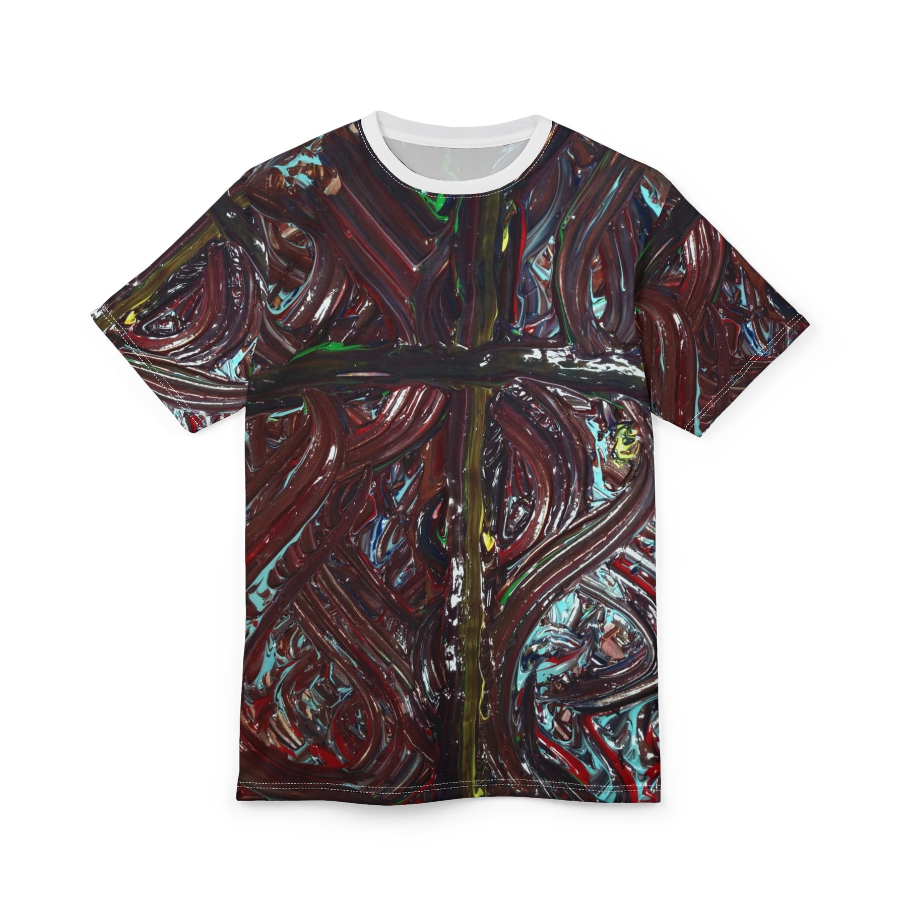 Artistic Cross Unisex Tee - Vibrant AOP Shirt for Faith & Expression Printify