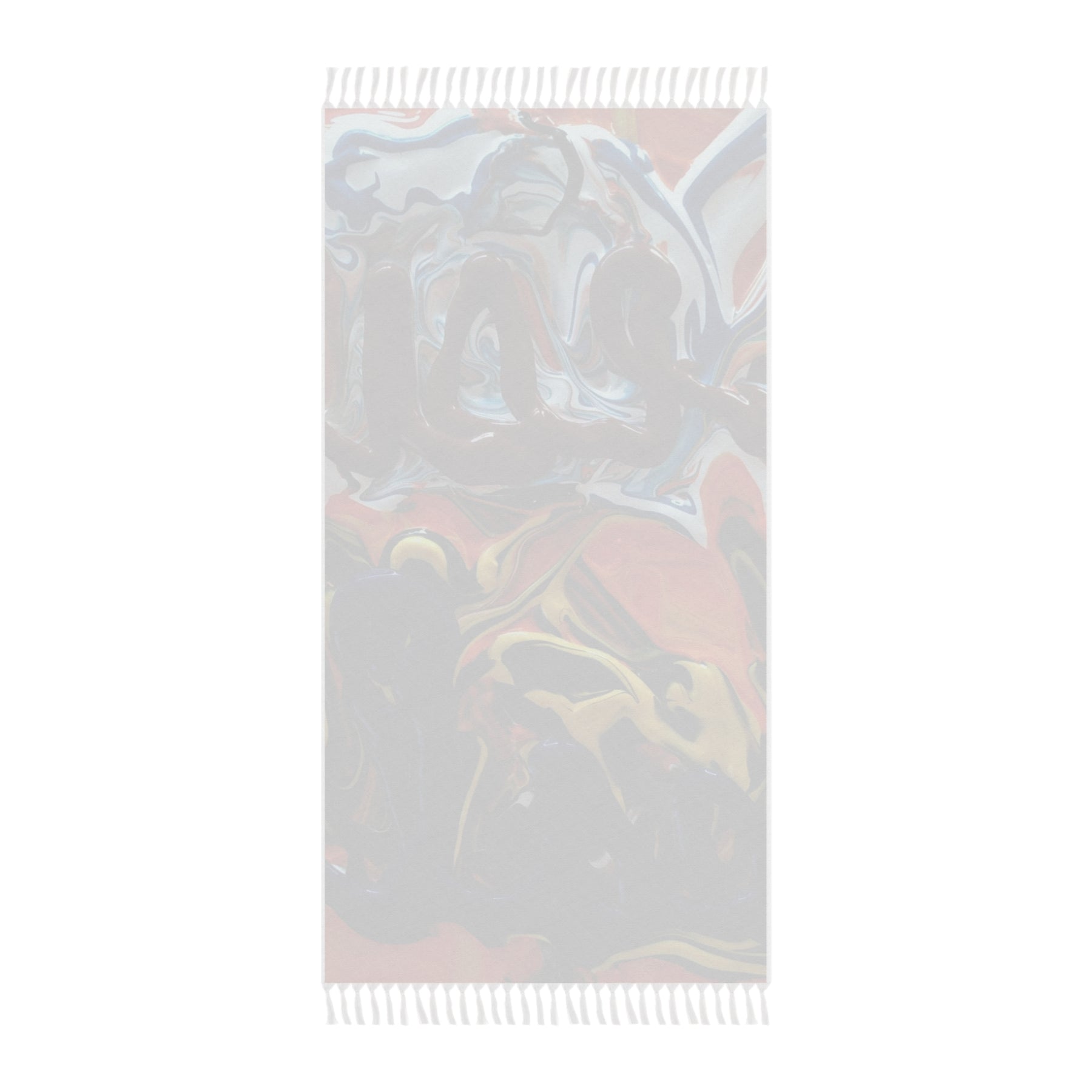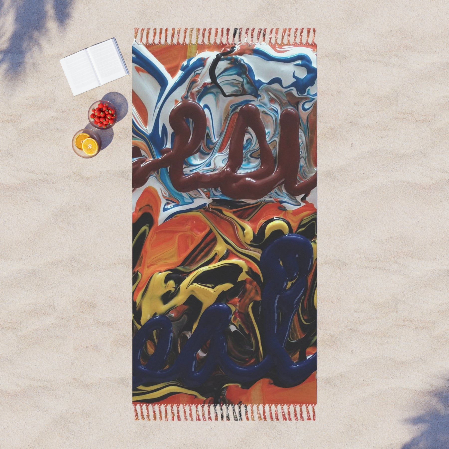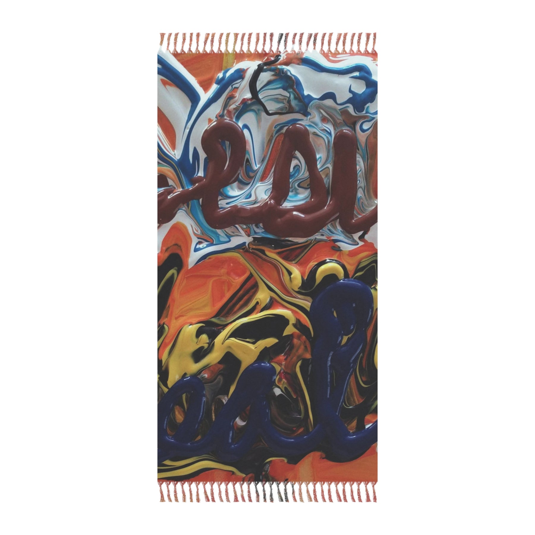 This lightweight boho beach cloth brings a splash of painterly color to slow-morning sunrises and salt-on-skin afternoons. The swirled, abstract print reads like a sunset poured across fabric — warm ochres and deep indigos melt together with streaks of rust and cream. Drape it over sand, spread it on a rocky outcrop, or wrap it around your shoulders as the ocean breeze cools; the fabric feels smooth, dries fast, and keeps the vivid design bright through many trips. Knotted tassels along the edges add handmade warmth and a relaxed, wanderer-ready silhouette that complements layered summer outfits and footprints in the surf. This cloth moves with you: beach blanket, travel throw, picnic layer, or post-swim cover — it makes everyday seaside rituals feel slower and more colorful.