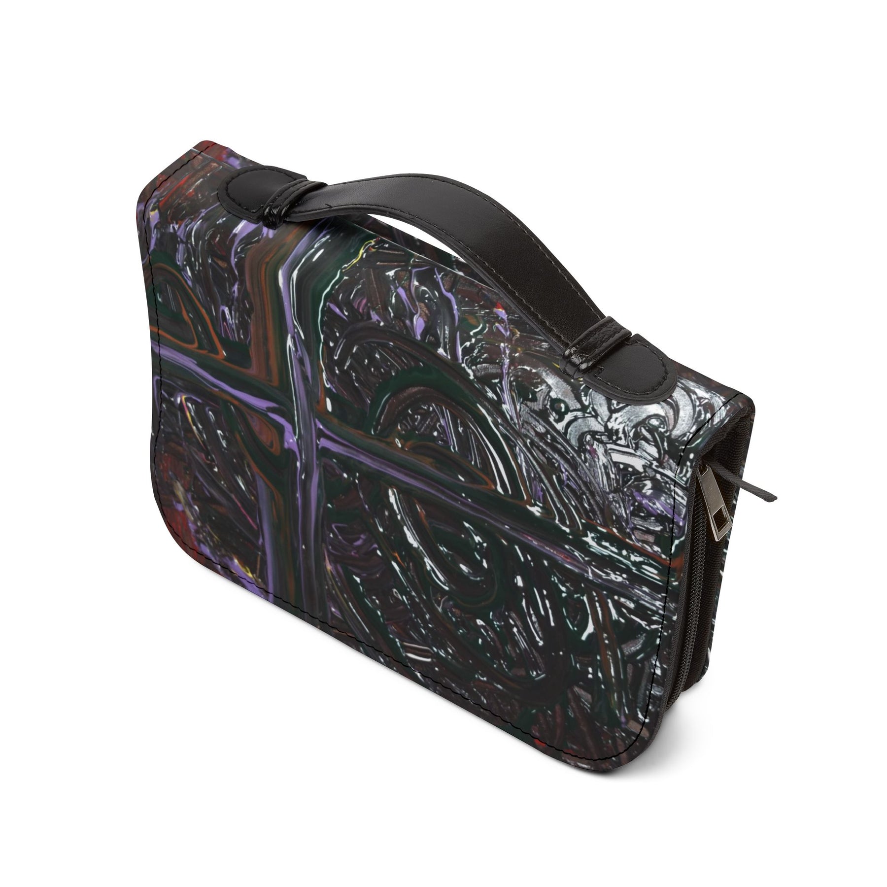 Elevate your spiritual journey with this beautifully crafted Bible Cover. Made from 100% PU leather, it offers the sophisticated look and feel of genuine leather without compromising on style. The unique design adds an elegant touch, while the sturdy black handle and zipper ensure practicality on the go. This cover is perfect for anyone seeking to protect their cherished Bible, whether you're attending church services, Bible study groups, or personal reflection time at home. It's a thoughtful gift for religious friends and family, especially during holidays like Christmas, Easter, or special occasions like baptisms and confirmations. Embrace the warmth and peace that this Bible Cover brings to your faith journey.