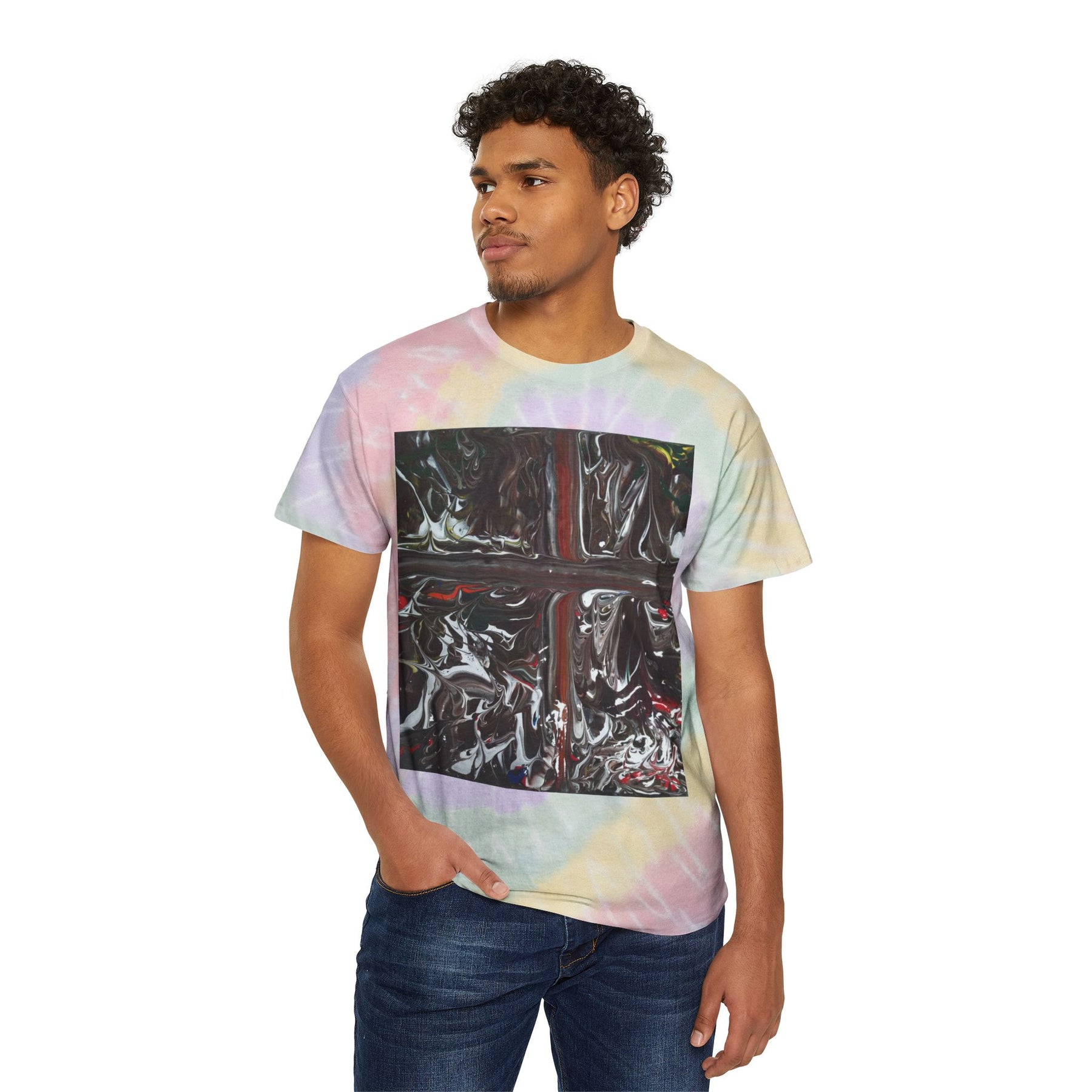 A soft, tie-dyed tee that feels like a sunny afternoon and wears like a memory. The pastel spiral background gives a laid-back, vintage vibe while the glossy, abstract square print at the center adds an unexpected, art-forward edge. Lightweight but sturdy, the cotton holds color and shape through washes so the spirals and glossy artwork stay bold. Slip it on for slow days at the studio, record-collecting runs, or for layering under a denim jacket when you want color without shouting. It’s the sort of shirt that starts conversations — people notice the layered contrast between retro dye and modern art, and it rewards repeat wears with character.