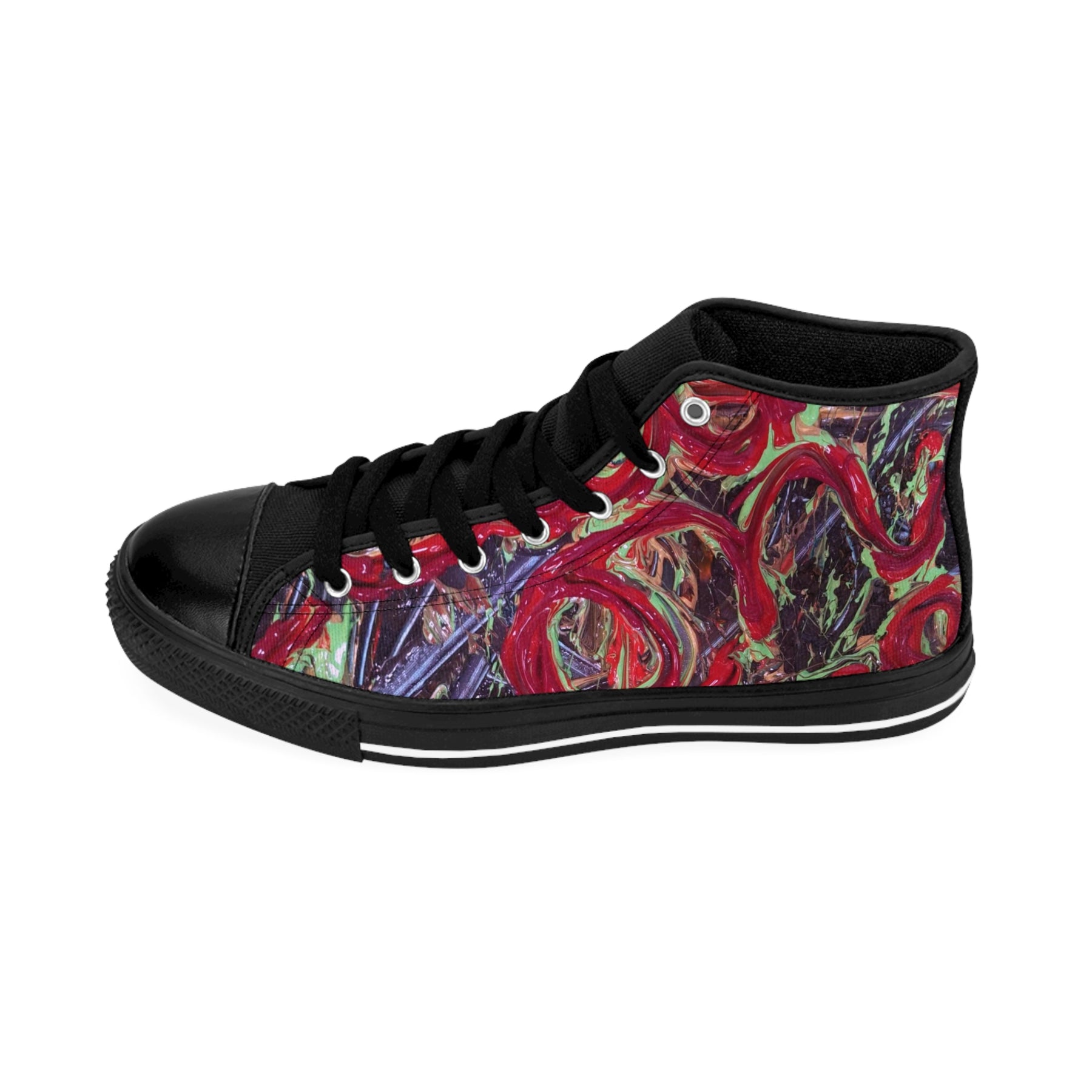 Women's Artistic High-Top Sneakers, Unique Fashion Footwear, Trendy Sneakers for Women, Stylish Gift for Her, Bohemian Style Shoes